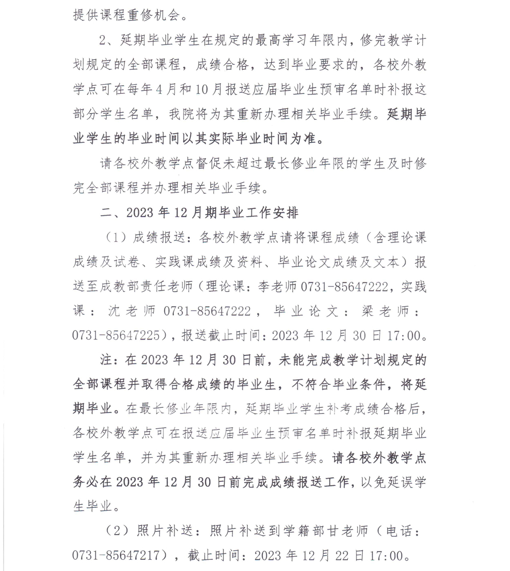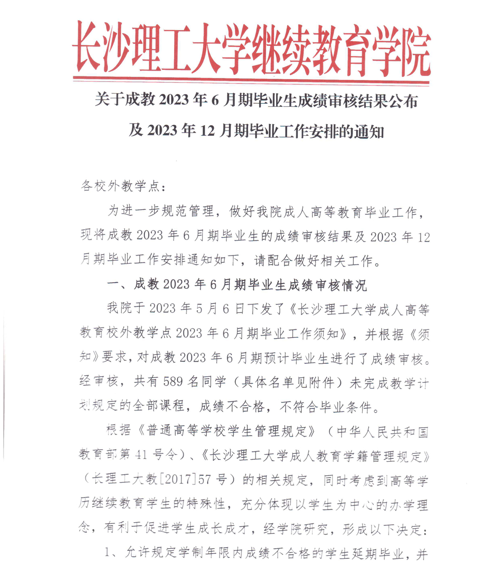 关于成教2023年6月期毕业生成绩审核结果公布及2023年12月期毕业工作安排的通知