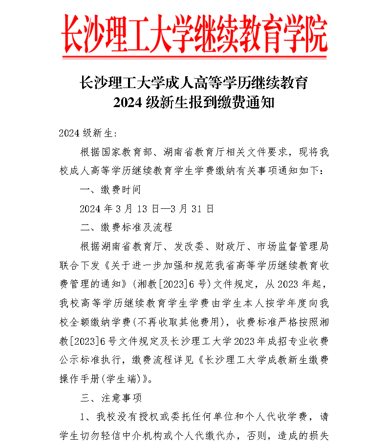 永利集团88304官网成人高等学历继续教育2024级新生报到缴费通知
