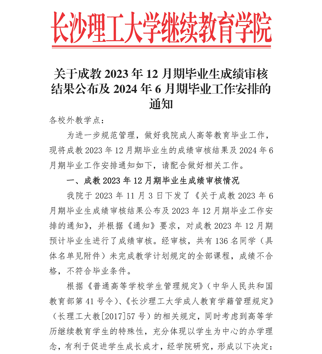 关于成教2023年12月期毕业生成绩审核结果公布及2024年6月期毕业工作安排的通知