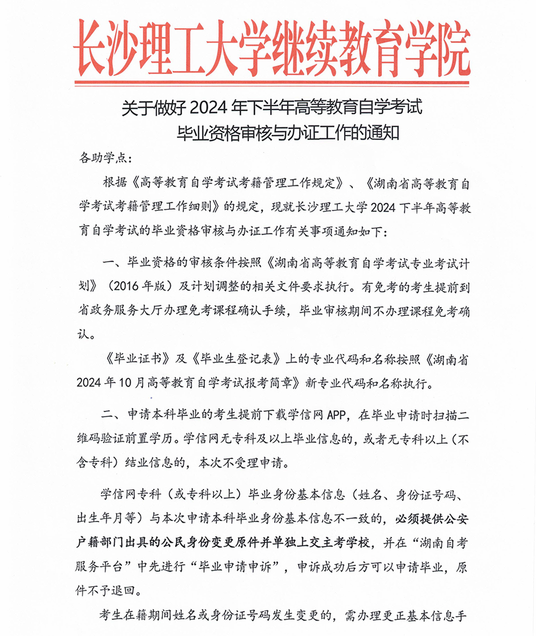 关于做好2024年下半年高等教育自学考试毕业资格审核与办证工作的通知