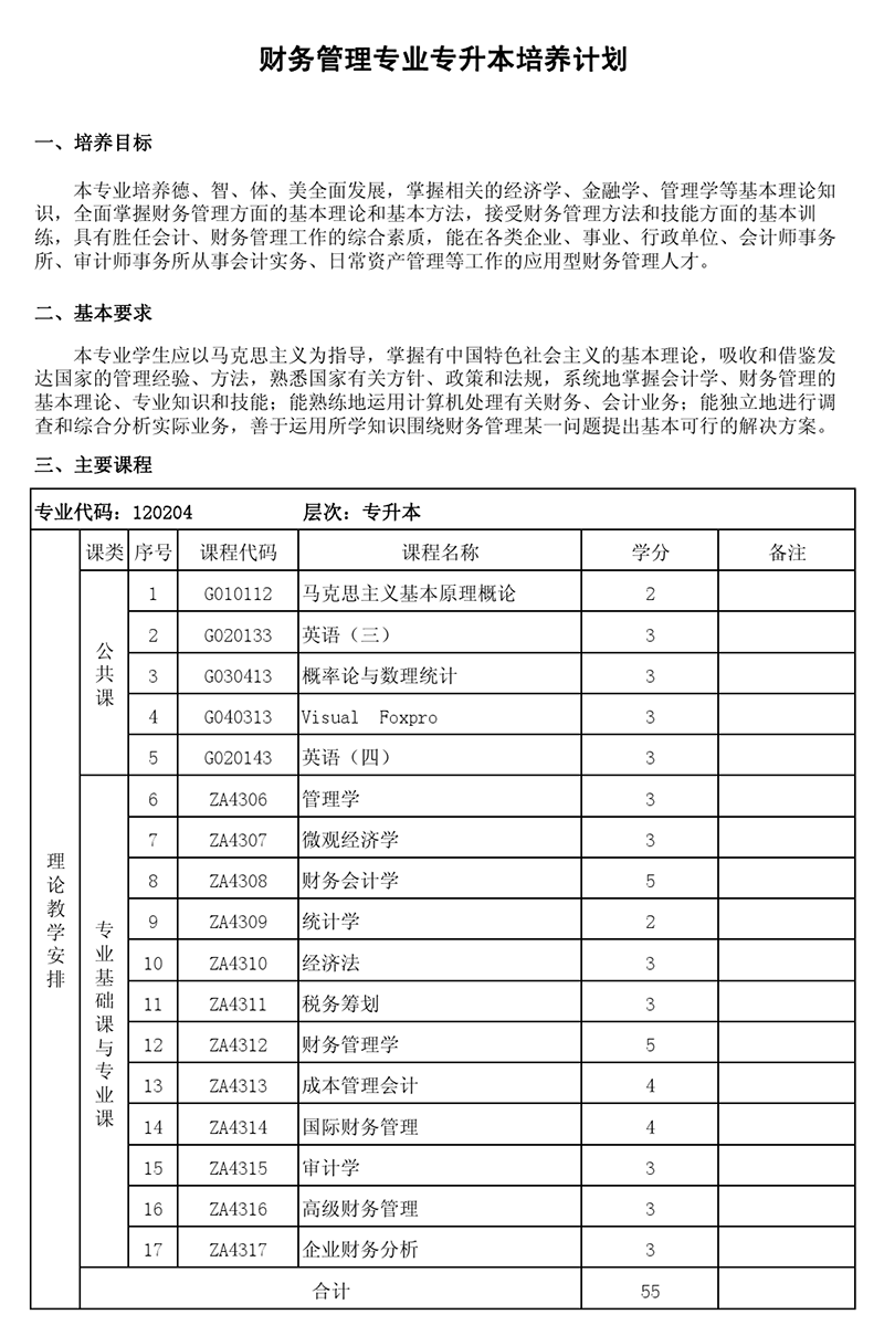 本科培养计划-专业代码:120204 财务管理专业