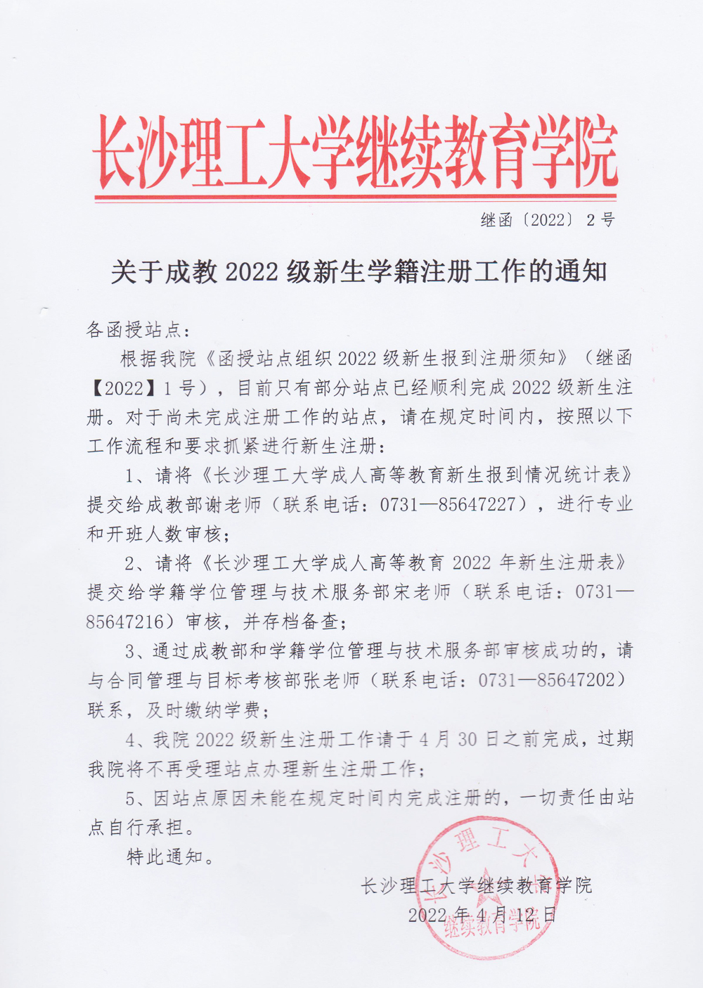 关于成教2022级新生学籍注册工作的通知
