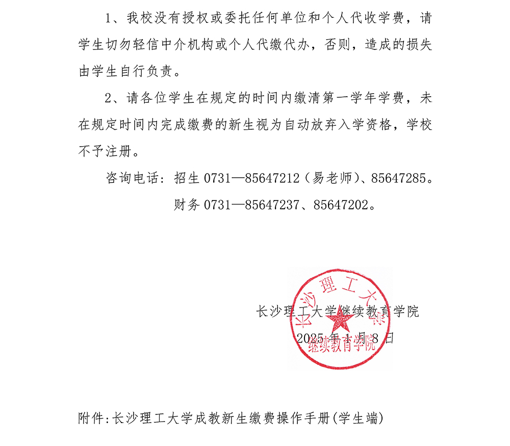 永利集团88304官网成人高等教育2025级新生报到缴费通知