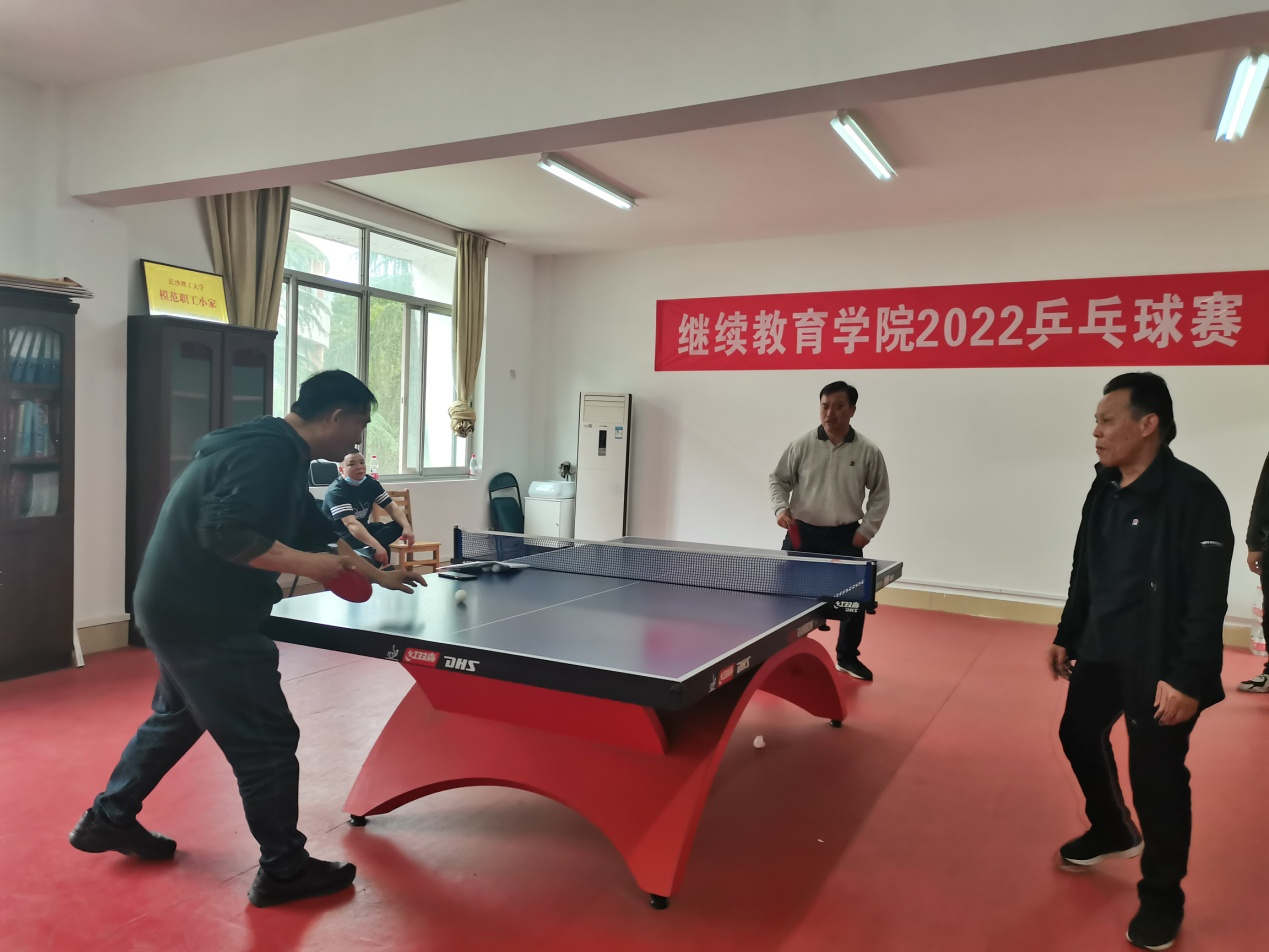为深入开展“全民健身活动”,推动全院广大教职工体育活动蓬勃开展,增强个人体质,展现广大教职工团结奋进、健康向上的精神,4月20号继续教育学院分工会组织了2022教职工乒乓球比赛,比赛在继教学院15教4楼教工之家举行,学院领导及广大教职工踊跃报名、积极参赛。本次比赛,学院6个工会小组的共64名选手将代表小组和个人参加团体比赛和个人循环淘汰赛。4月19日下午,团体比赛在学院党总支何纯芳书记的开球中拉开帷幕,经过激烈追逐,第二、四、六教工小组先拔头筹,赢得胜利,他们士气高昂,正为下一阶段的比赛摩拳擦掌,力争赛出更好的成绩。