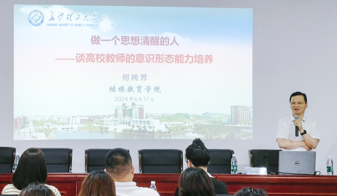 6月18日下午,继教学院“教学质量月”第二场教育教学专题讲座在14教118会议室举行,主题是“做一个思想清醒的人------谈高校教师的意识形态能力培养”,由学院原党委书记何纯芳主讲,院党委副书记兼副院长谢士成主持,副院长向英、教学管理部主任张静、合作机构管理服务中心负责人陈会芳及相关教务人员、合作机构主要负责人及全体教职工参加。