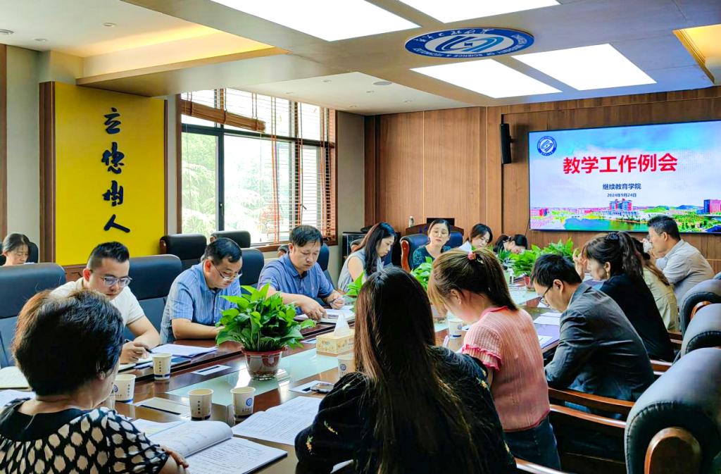 2024年9月24日上午,继教学院2024--2025学年第一学期第一次教学工作例会在15教四楼会议室召开。学院副书记兼副院长任艮丰、副院长向英、合作机构管理中心负责人陈会芳、学院教学督导杨力君、合作机构教学负责人和教学管理部教务人员参加。会议由教学管理部主任张静主持。