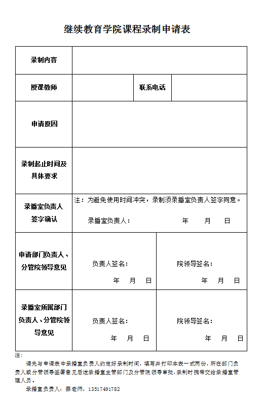 永利集团88304官网继续教育学院课程录制申请表.docx