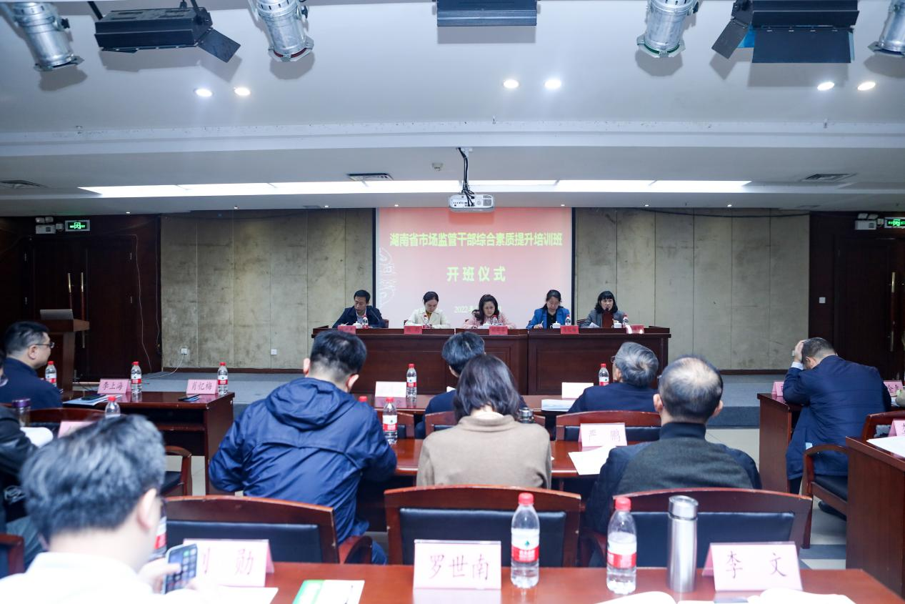 2022年11月21日,由湖南省产商品质量抽检中心、网络商品交易监测中心、法人大数据运维中心委托、永利官网承办的“湖南省市场监管干部综合素质提升培训班”,在云塘校区国际学术交流中心正式开班。湖南省产商品质量抽检中心主任肖忆梅、网络商品交易监测中心主任颜珠容、法人大数据运维中心主任欧莉,永利集团88304官网继续教育学院副院长刘英姿同志参加了本次开班仪式。