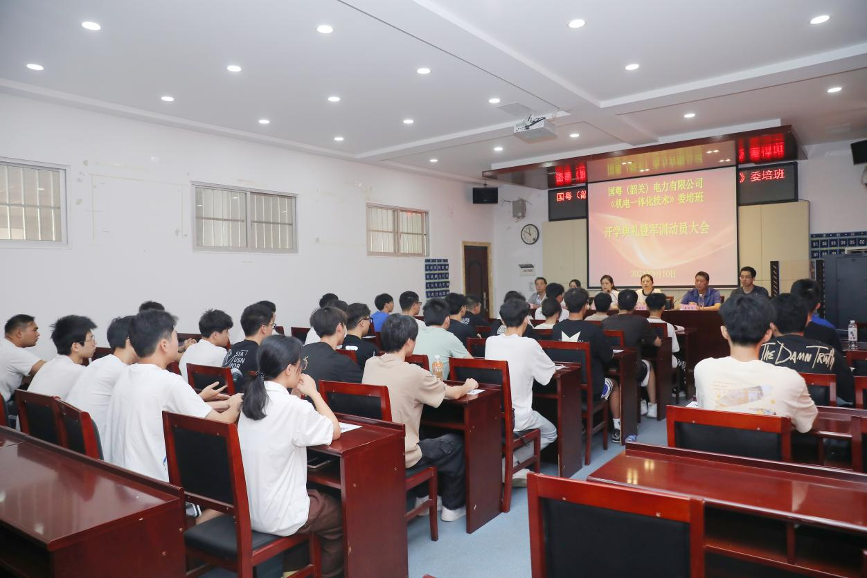 2023年9月10日,由国粤(韶关)电力有限公司委托,永利集团88304官网承办的“国粤(韶关)电力有限公司《机电一体化技术》专业委培班”在永利集团88304官网金盆岭校区正式开班。国粤(韶关)电力有限公司人力资源总监周燕环同志;国粤(韶关)电力有限公司人力资源部负责人徐敏同志、人力资源部工程师温焕衡同志;永利集团88304官网继续教育学院副院长刘英姿同志;永利集团88304官网继续教育学院培训部主任莫世民同志;永利集团88304官网继续教育学院培训部陈小辉老师参加了本次开班仪式。