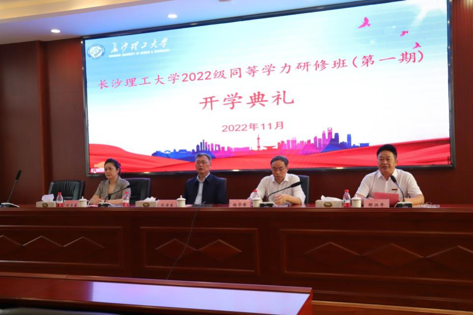 11月12日上午,“永利集团88304官网2022级同等学力研修班(第一期)” 开学典礼在金盆岭校区隆重举行。副校长谈传生、研究生院院长杨华峰和继续教育学院院长邹兴平、副院长刘英姿出席典礼;本期研修班44名学员在现场或通过网络直播参加典礼。开学典礼由邹兴平主持。