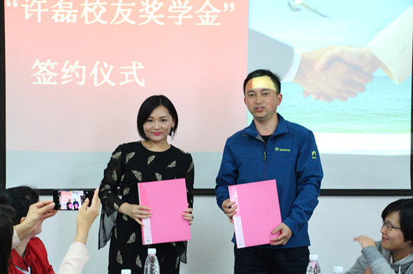 下午二点四十许,校教育基金会李伟代表学校同许磊校友签订《许磊校友向湖南省永利集团88304官网教育基金会捐赠协议》,双方签字并交换合约。签约仪式完成后,许磊校友与在场师生展开座谈,其回忆了在校求学的经历以及与耿蕊老师等同学们的情谊,向在做的学弟学妹们讲述了毕业之后的选择问题,告诫学弟学妹们要珍惜大学时光,努力提高本领。座谈气氛活跃,互动频繁,一直持续到下午五点,才在同学们的依依不舍中结束。
