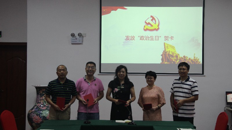 张美红还向全体党员赠送“政治生日”贺卡,希望全体党员时刻牢记自己共产党员身份,增强党员意识,注重党性修养,践行入党誓词,不忘初心,继续前进,践行四讲四有,争做合格党员。