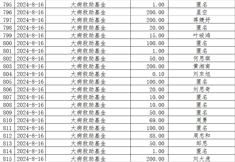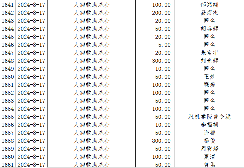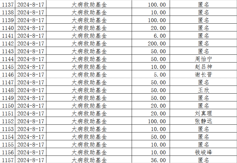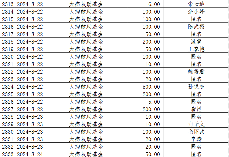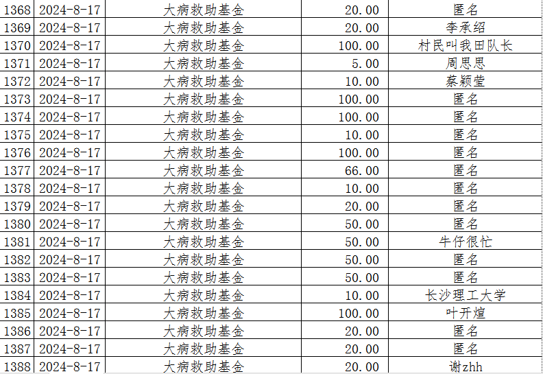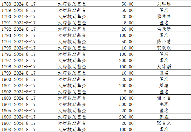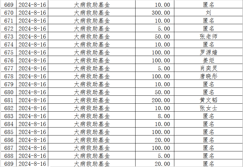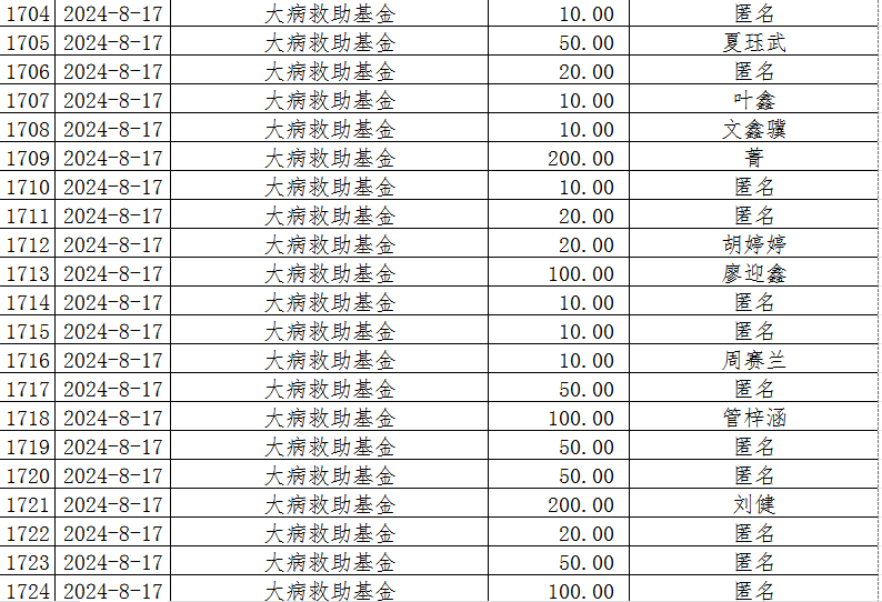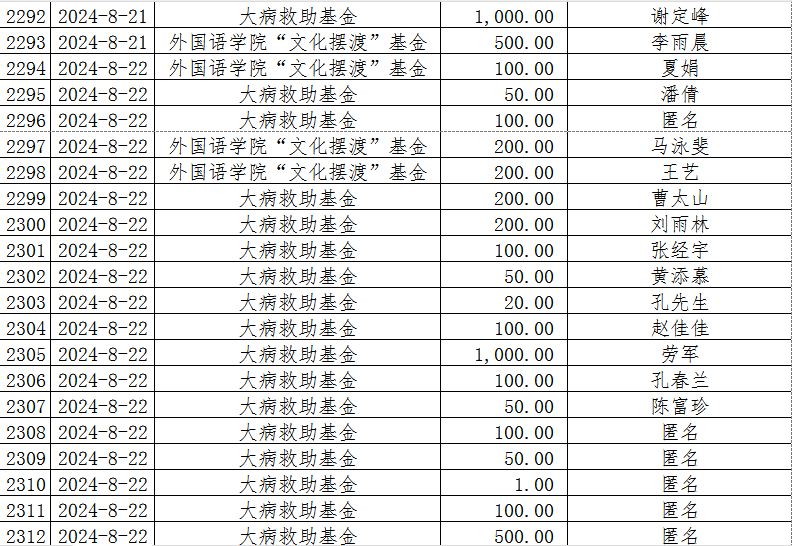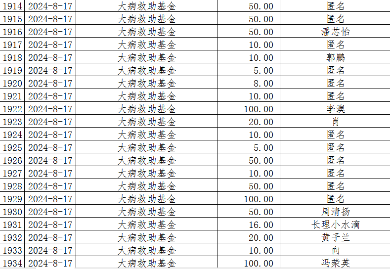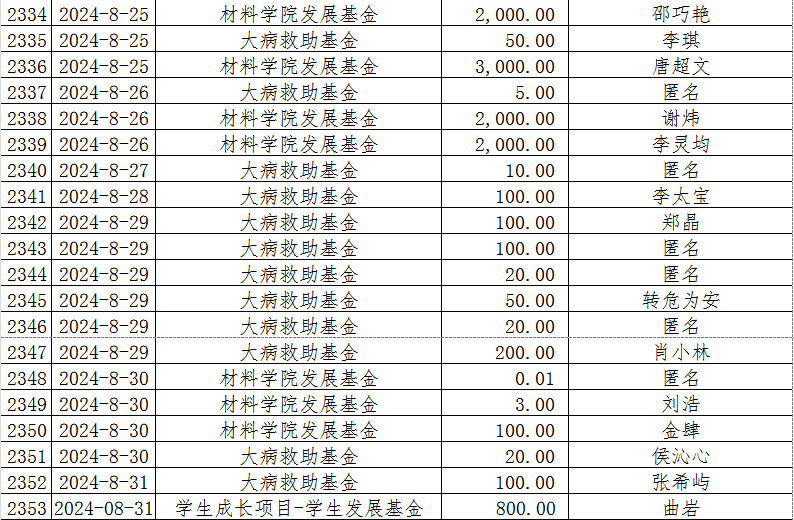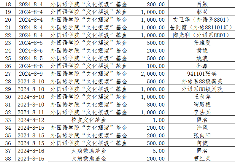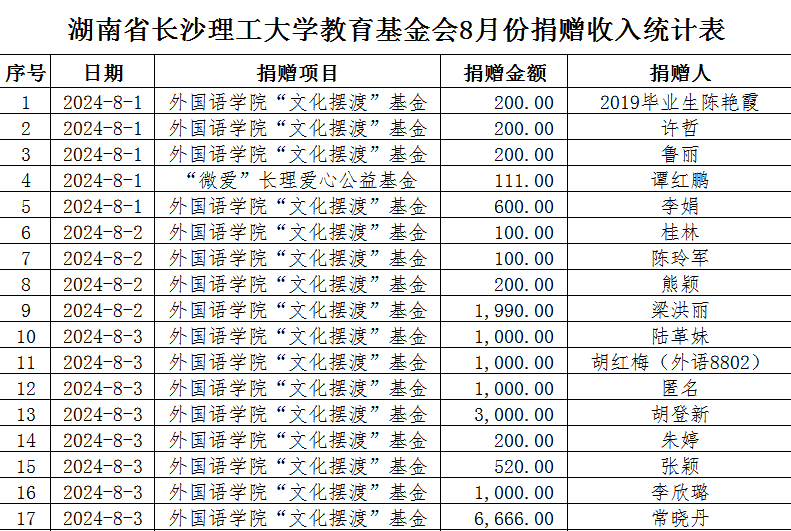 湖南省永利集团88304官网教育基金会2024年8月捐赠收入表