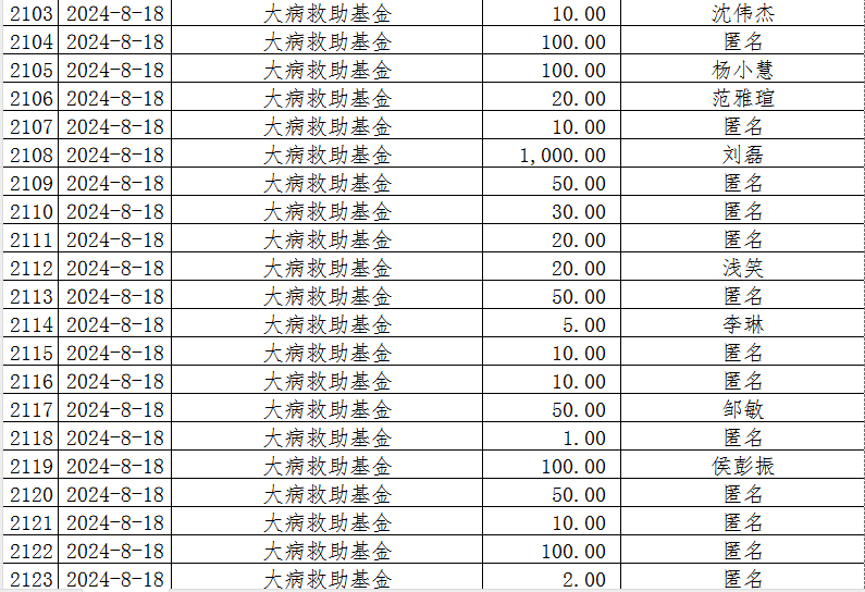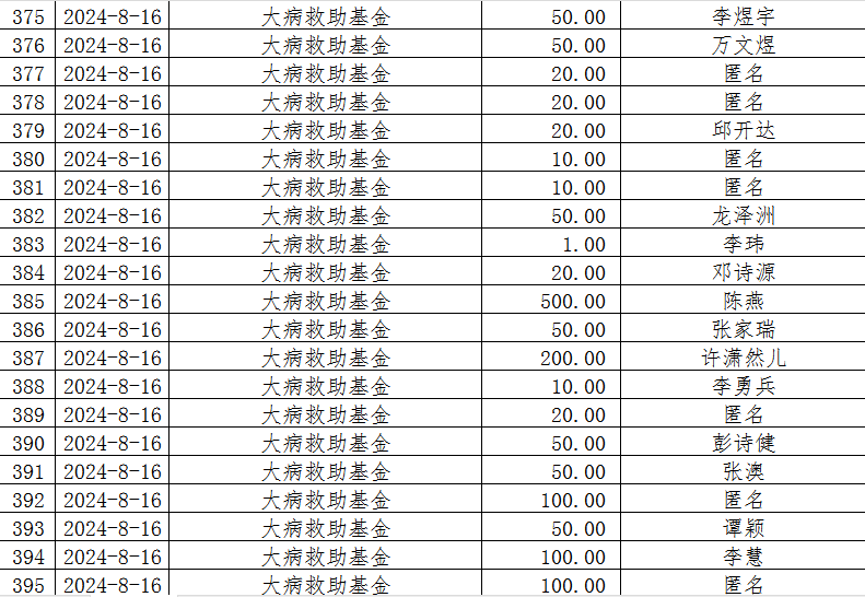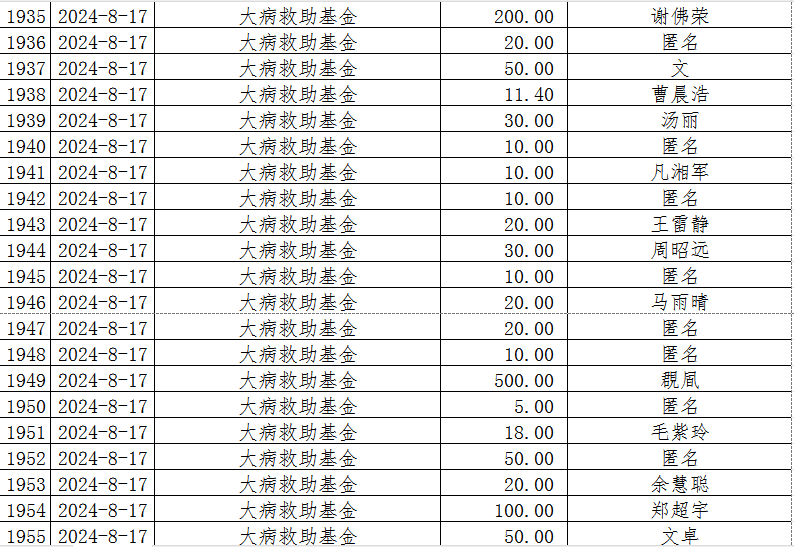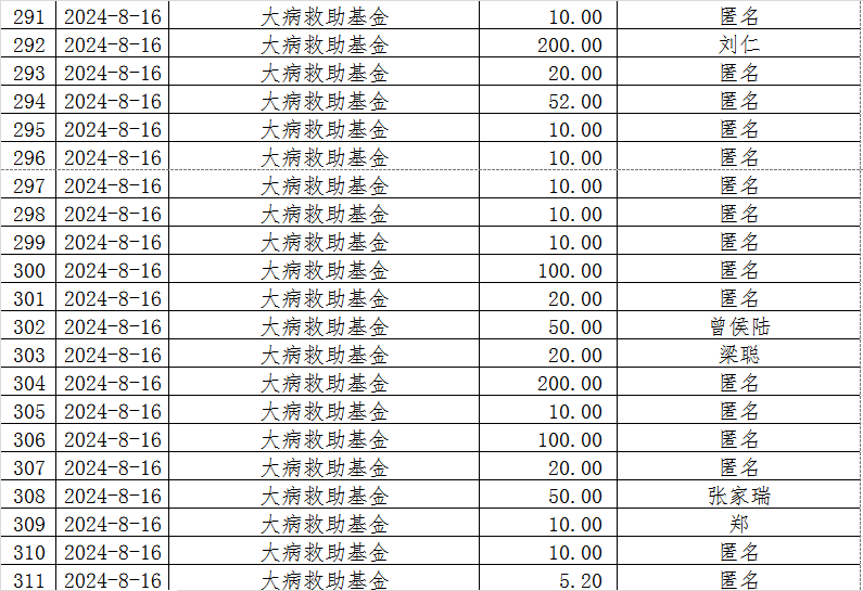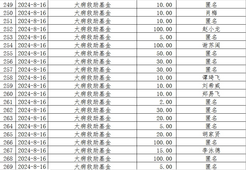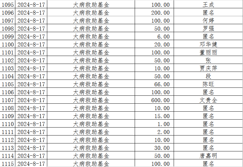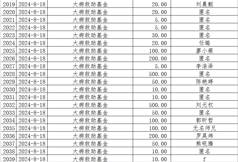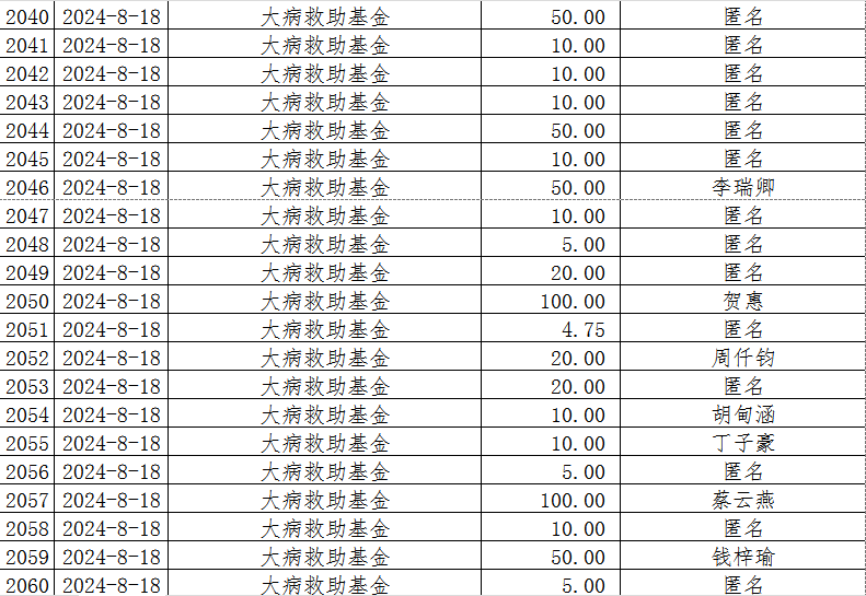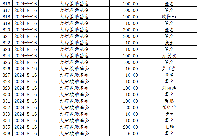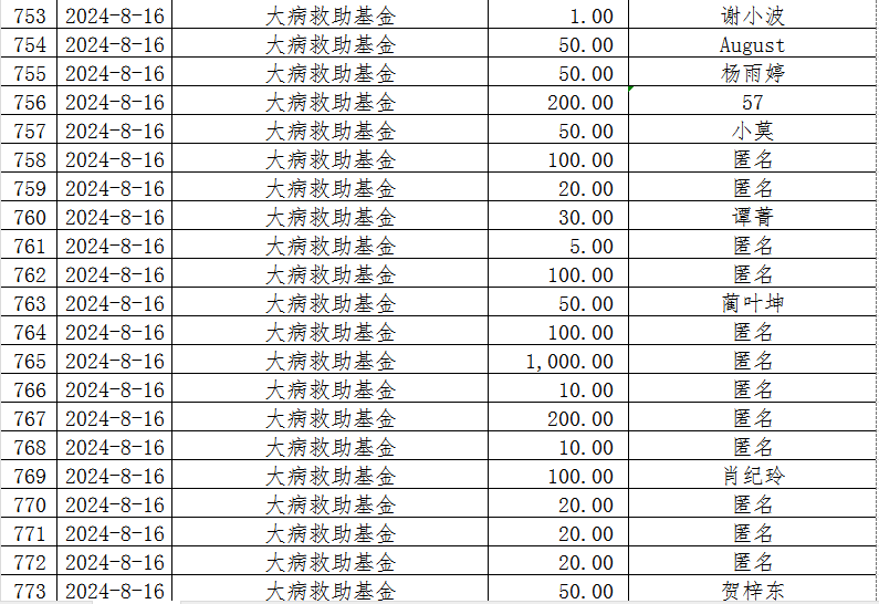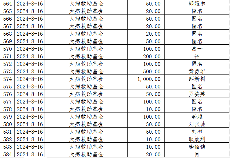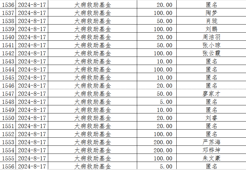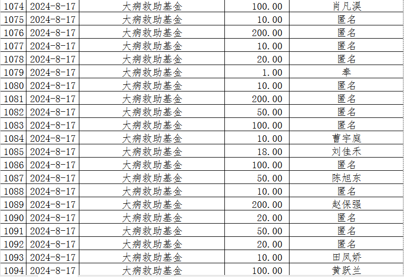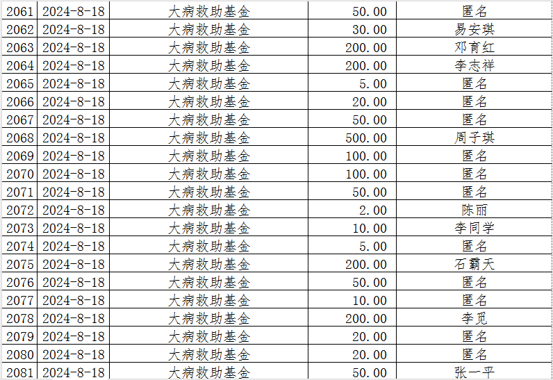 湖南省永利集团88304官网教育基金会2024年8月捐赠收入表