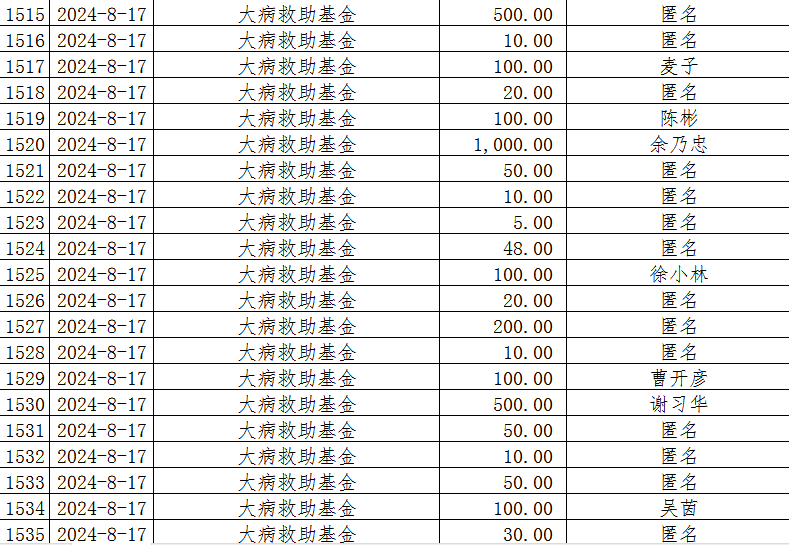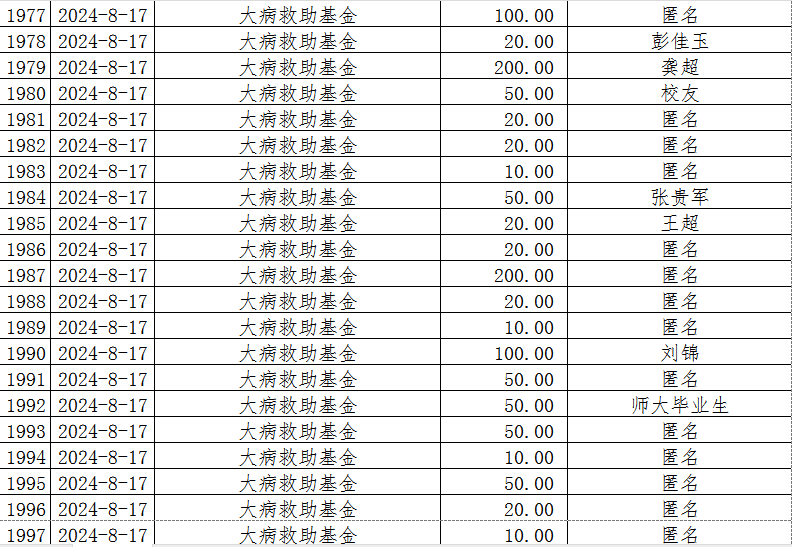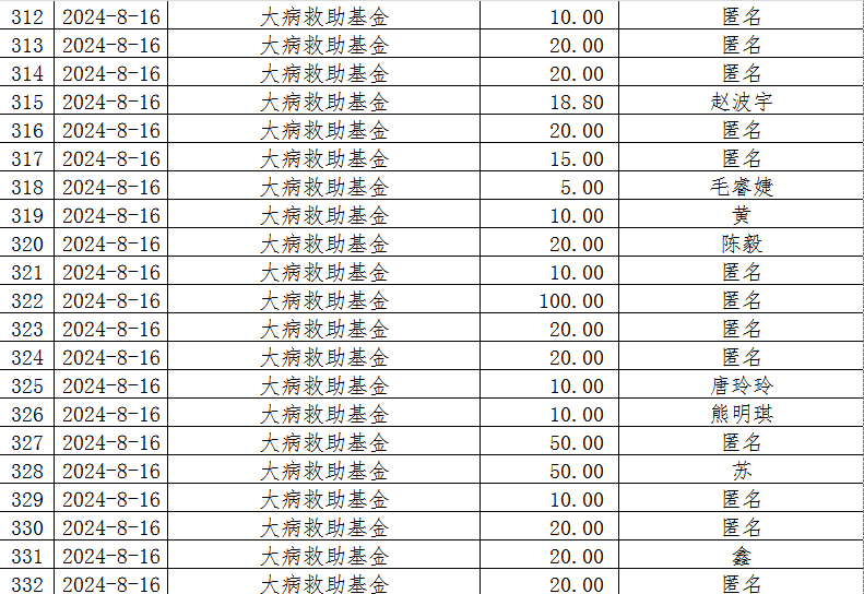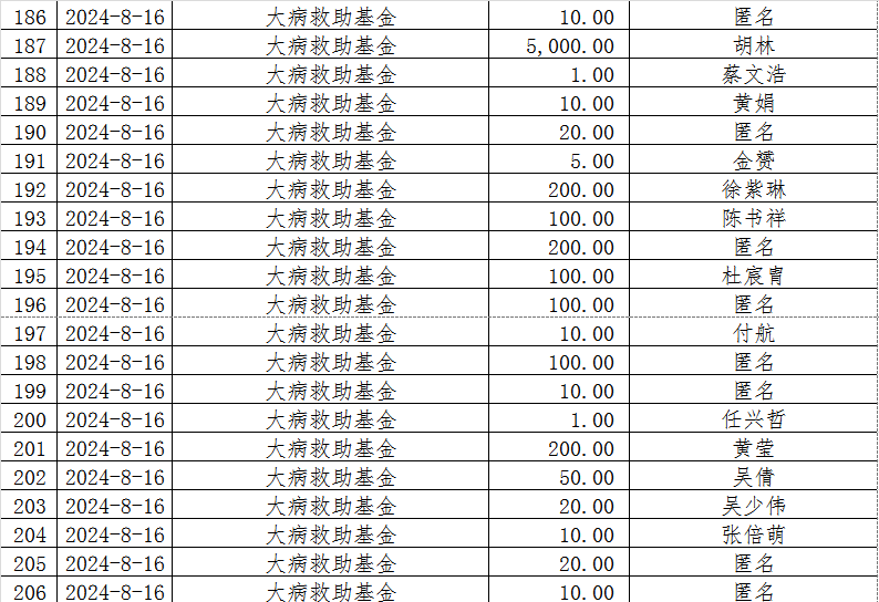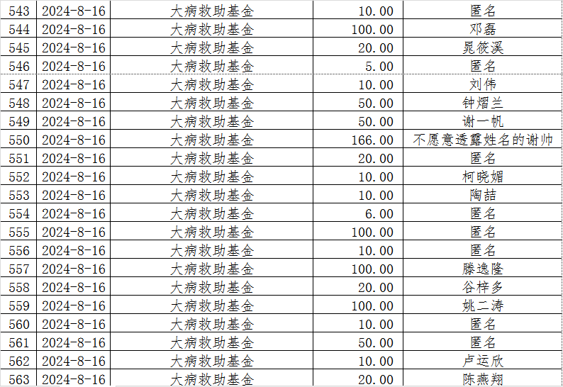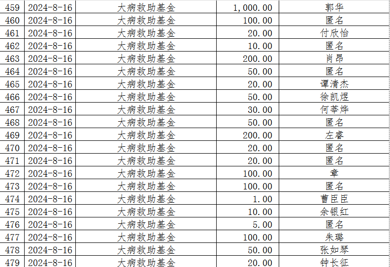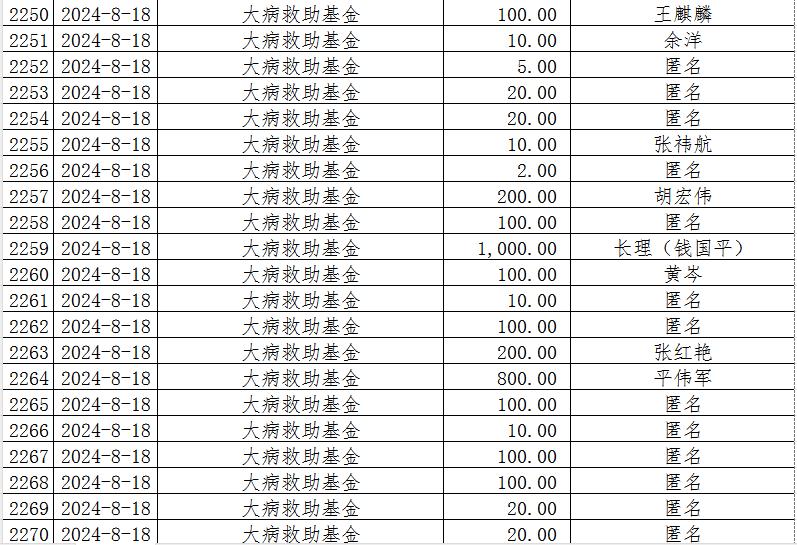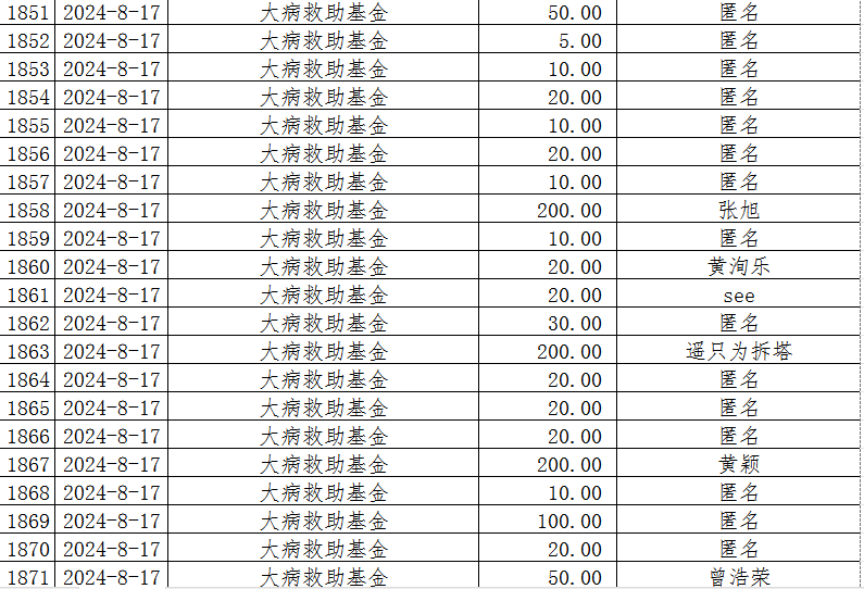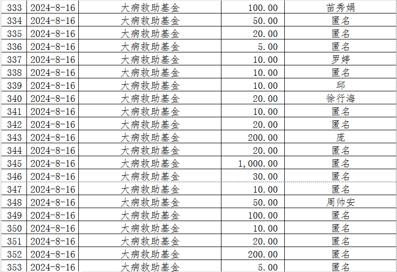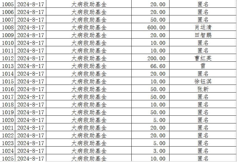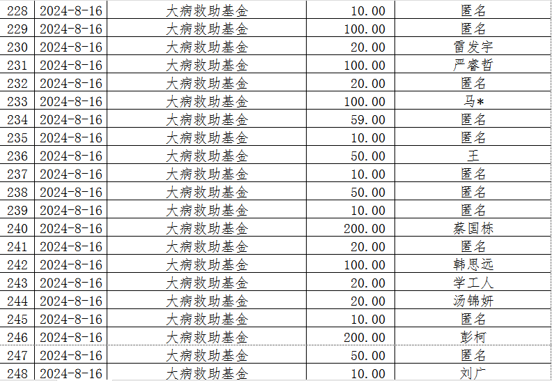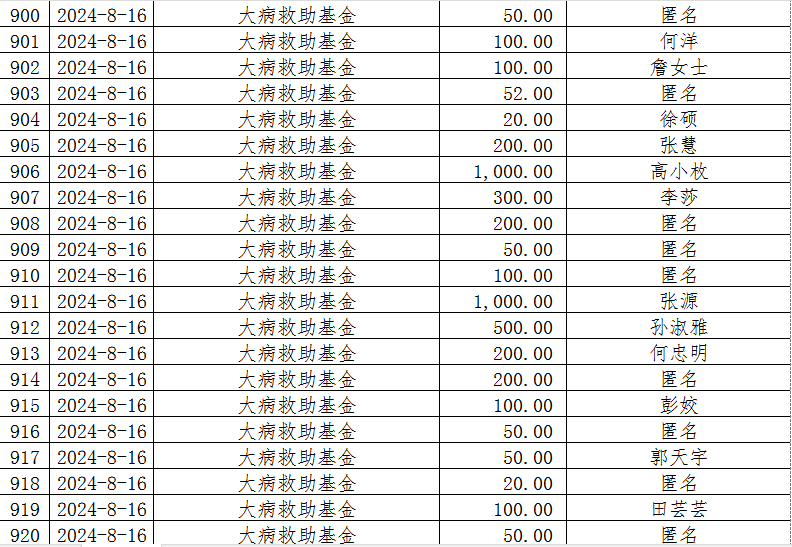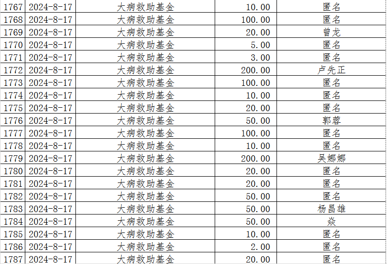 湖南省永利集团88304官网教育基金会2024年8月捐赠收入表