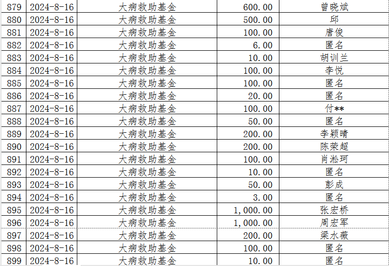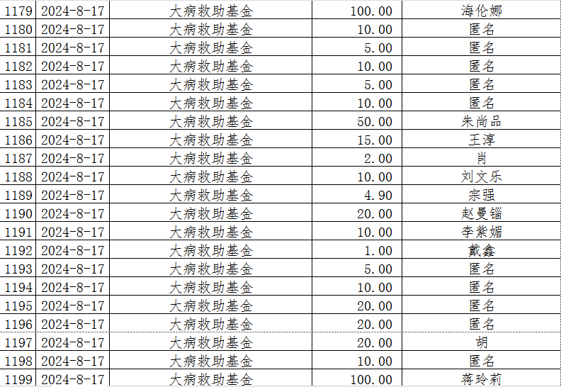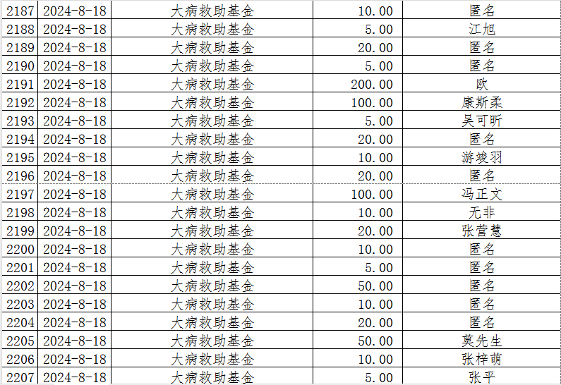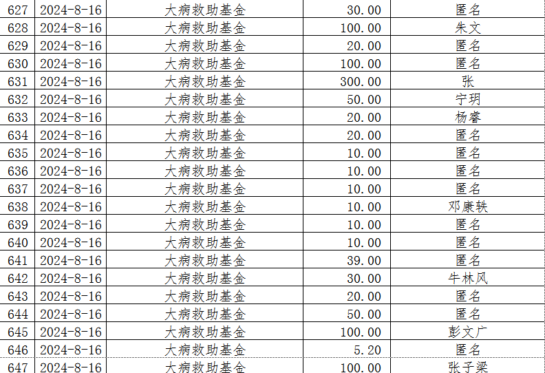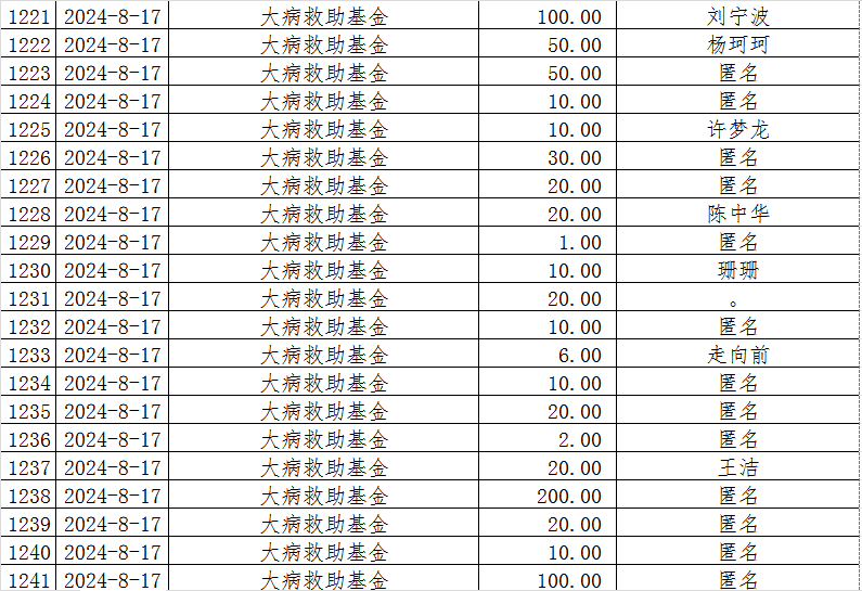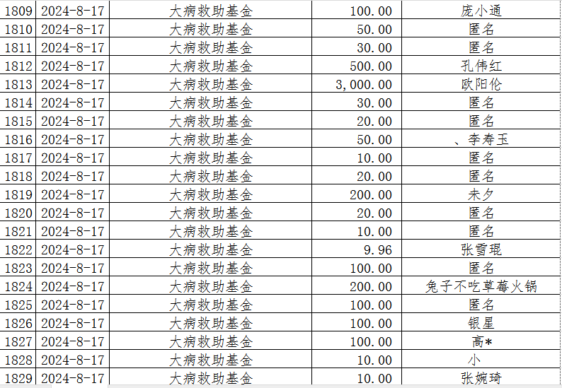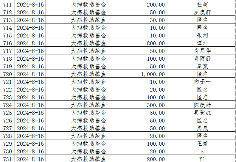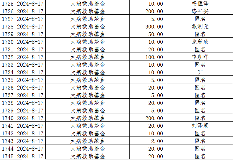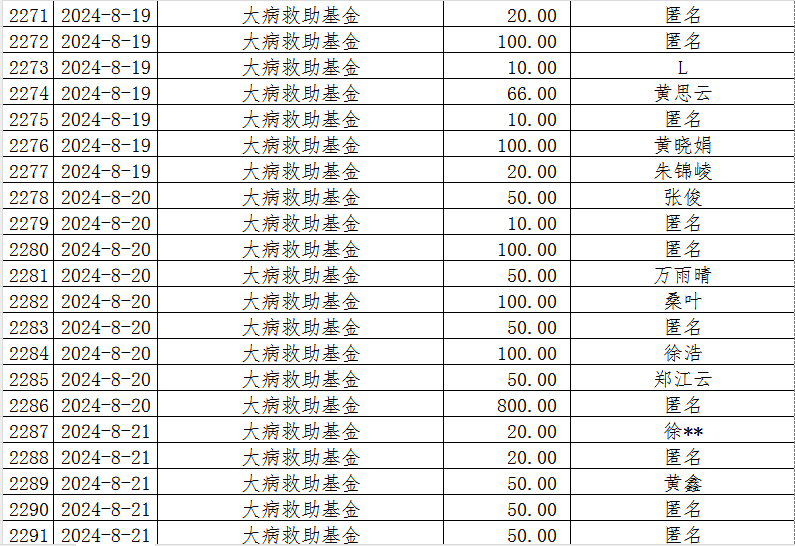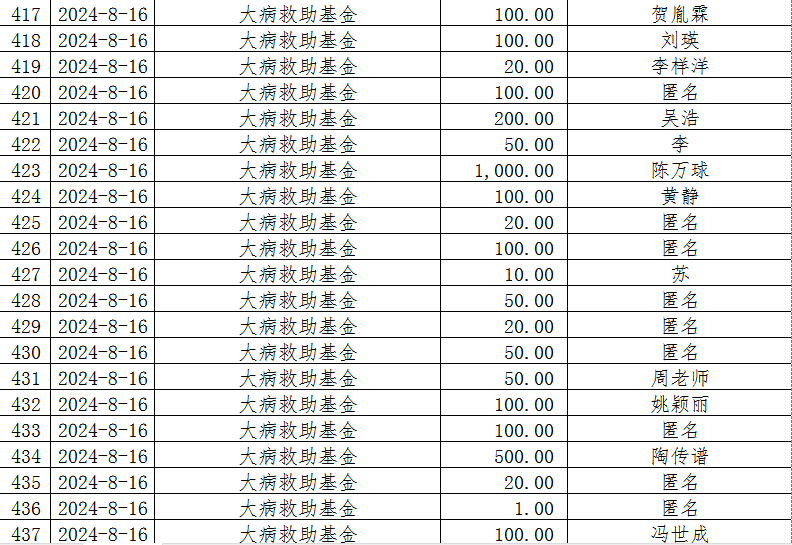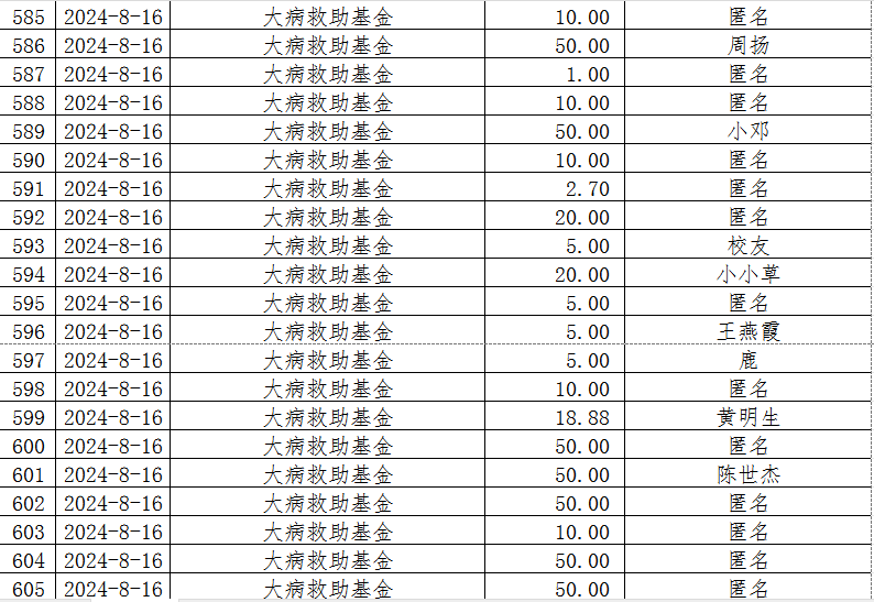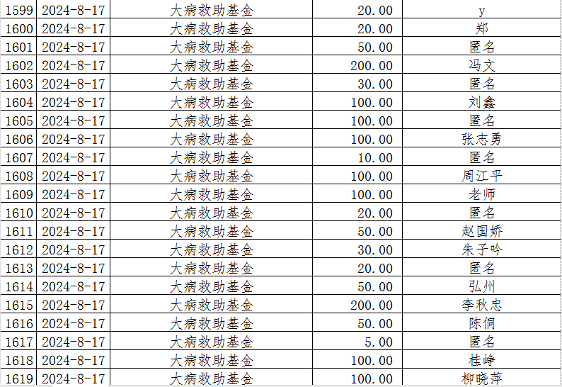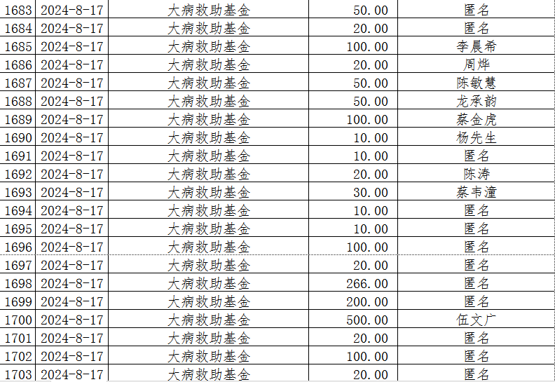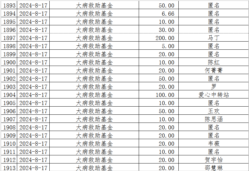 湖南省永利集团88304官网教育基金会2024年8月捐赠收入表