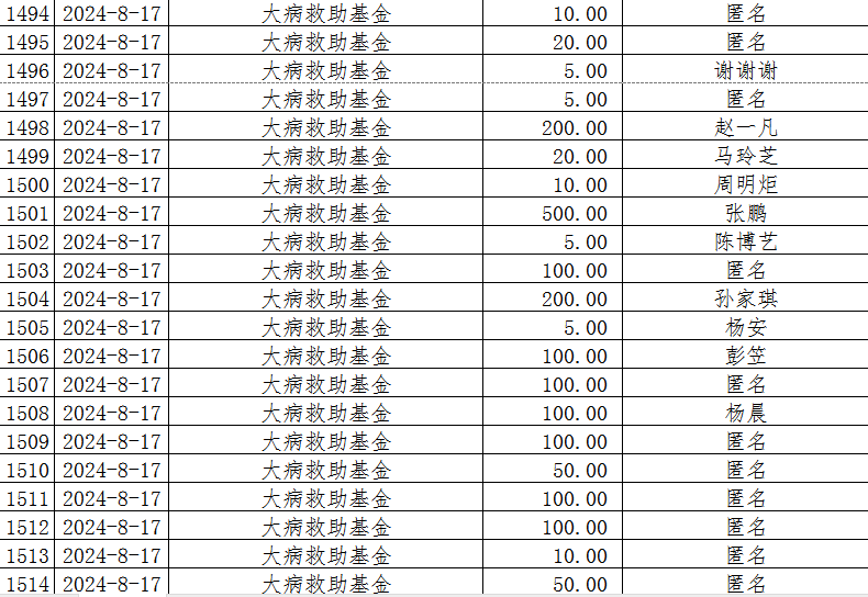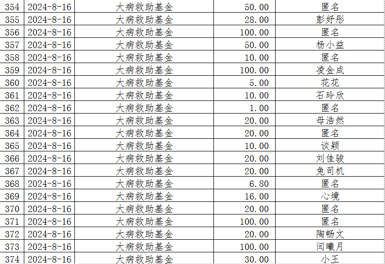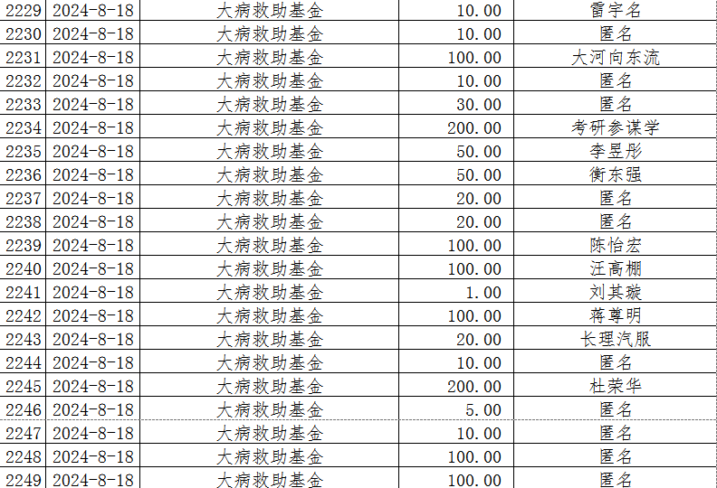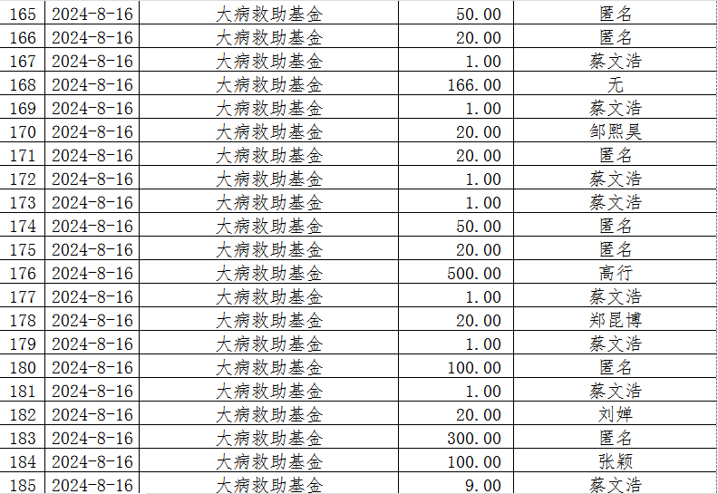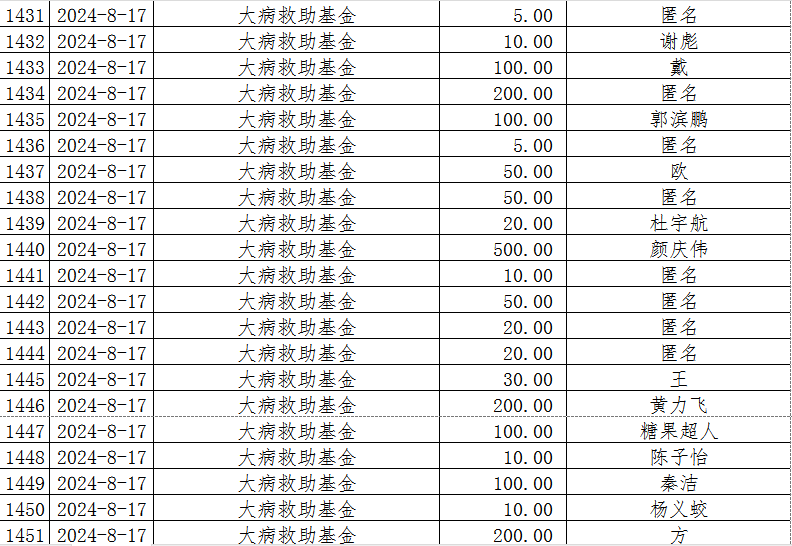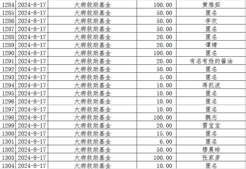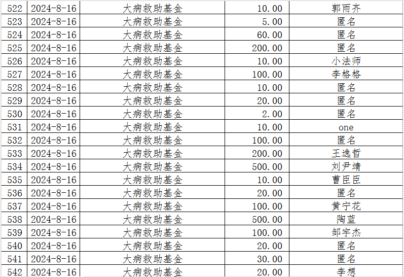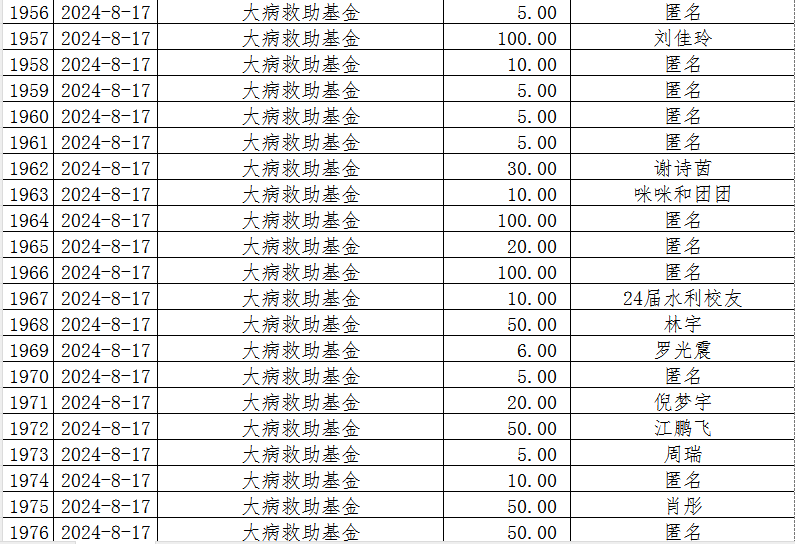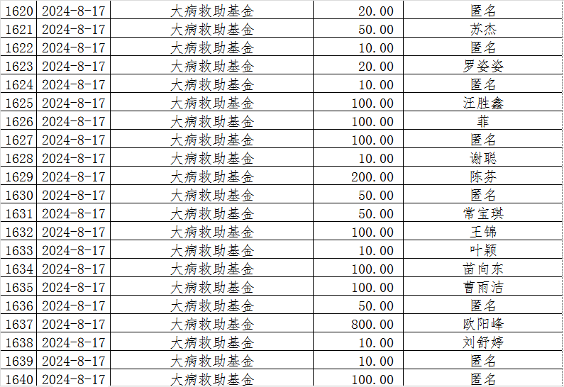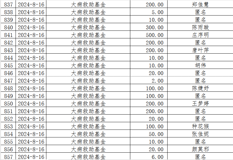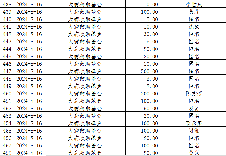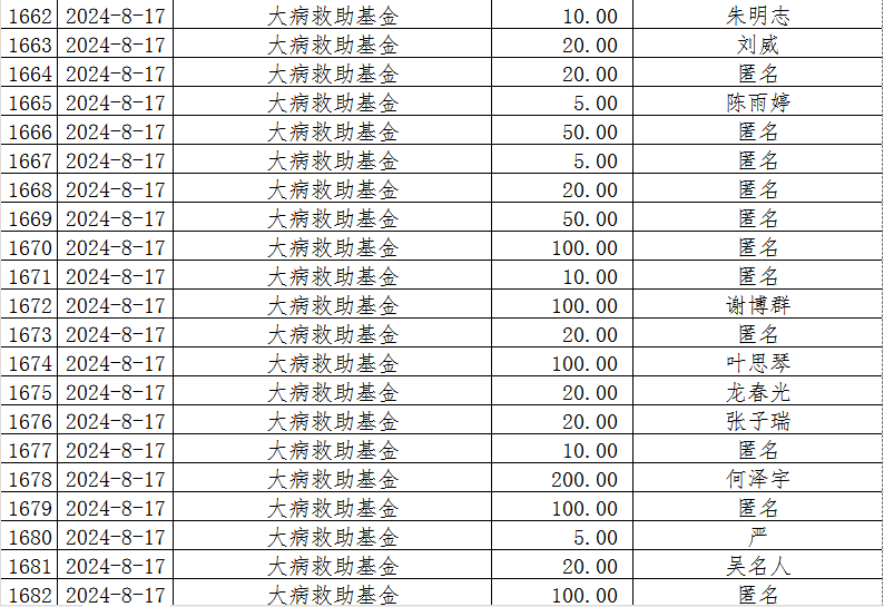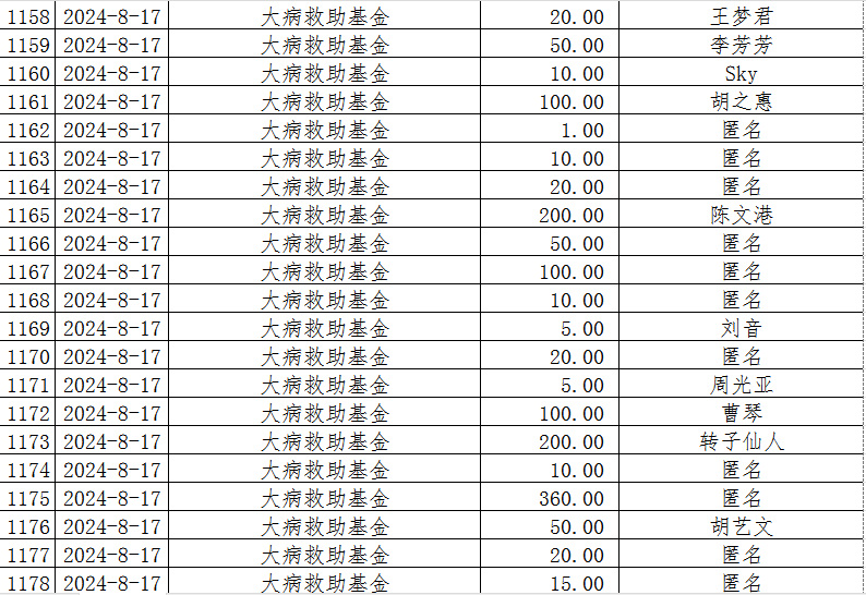 湖南省永利集团88304官网教育基金会2024年8月捐赠收入表
