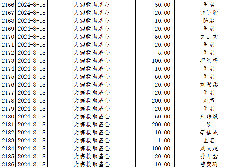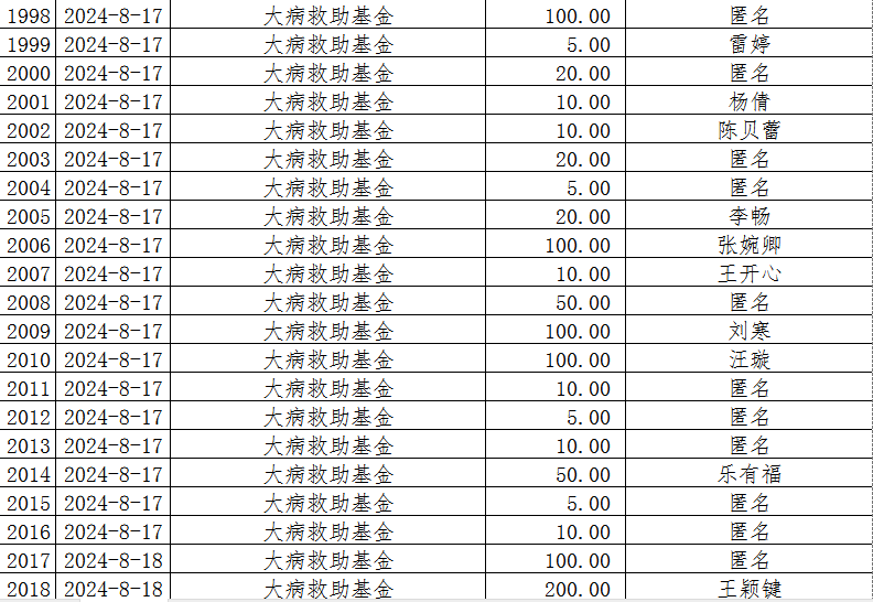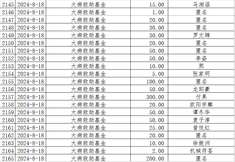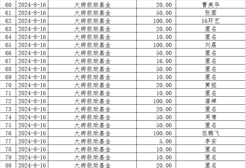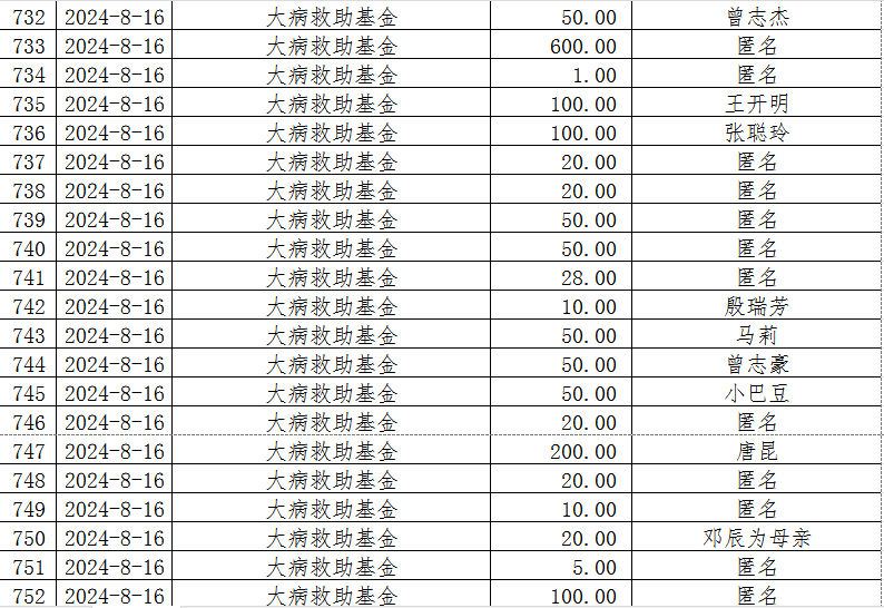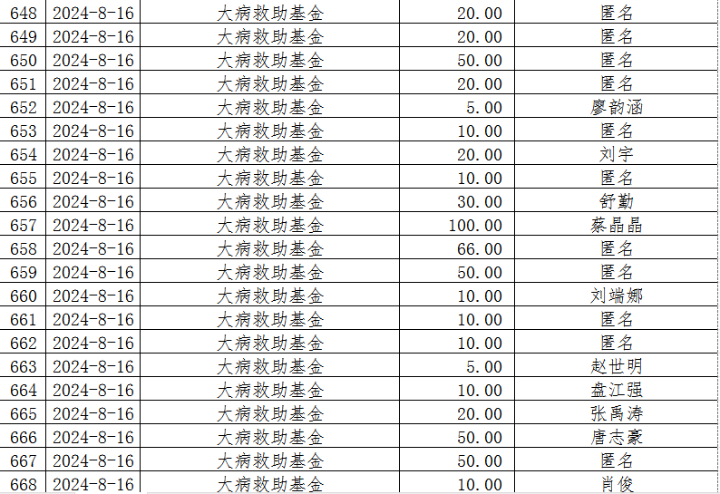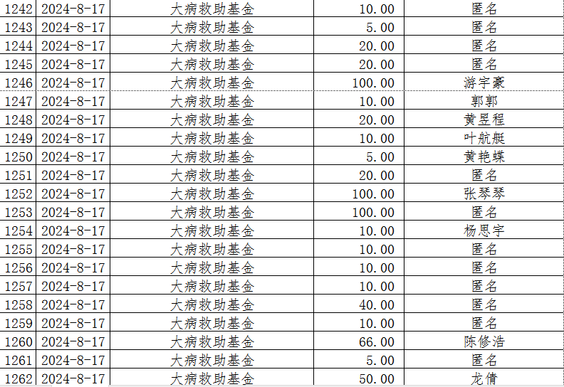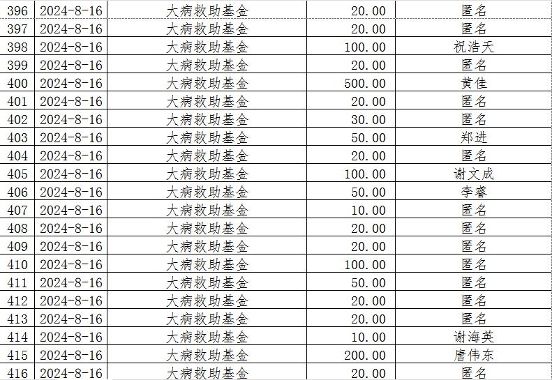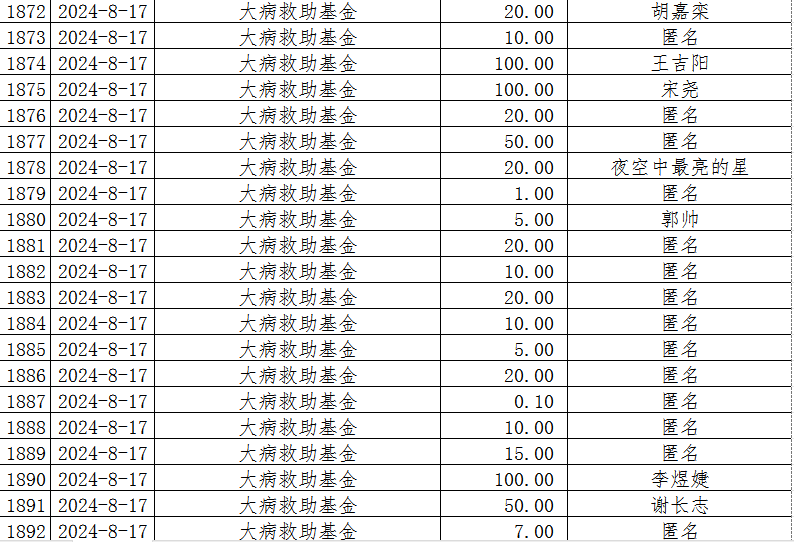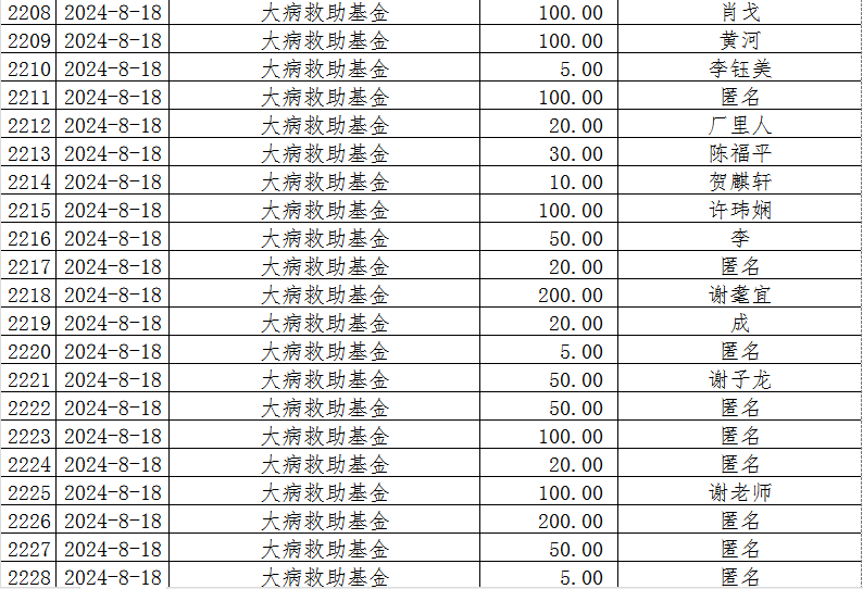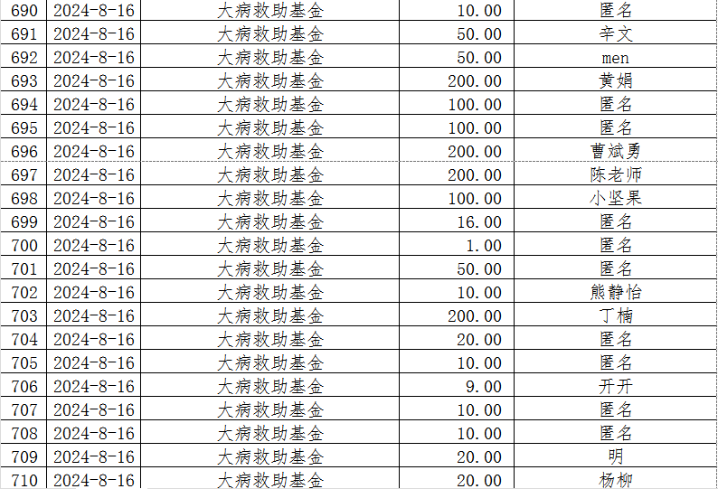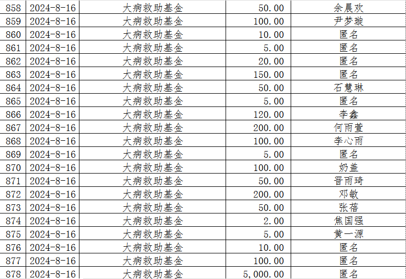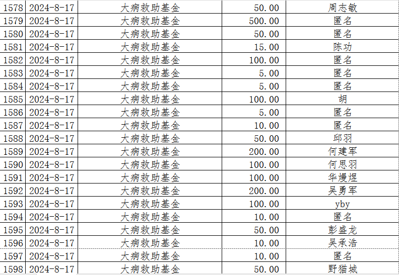 湖南省永利集团88304官网教育基金会2024年8月捐赠收入表