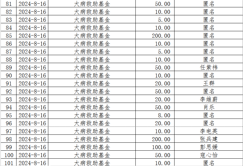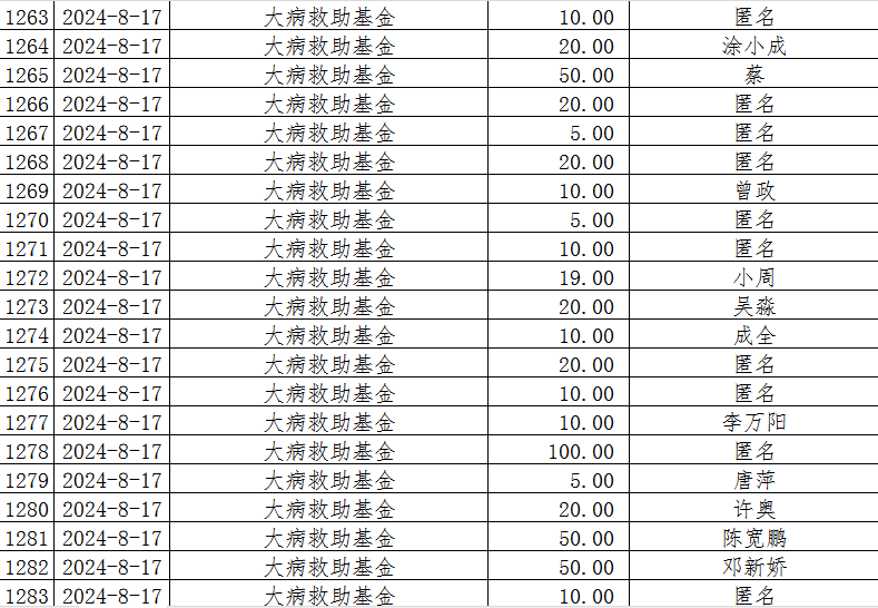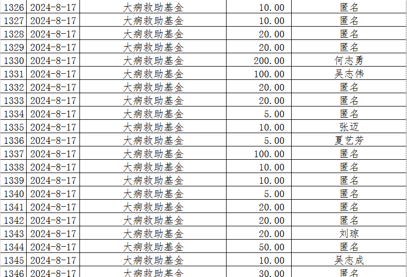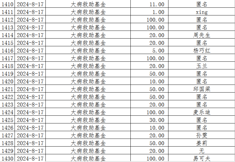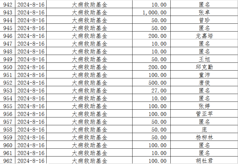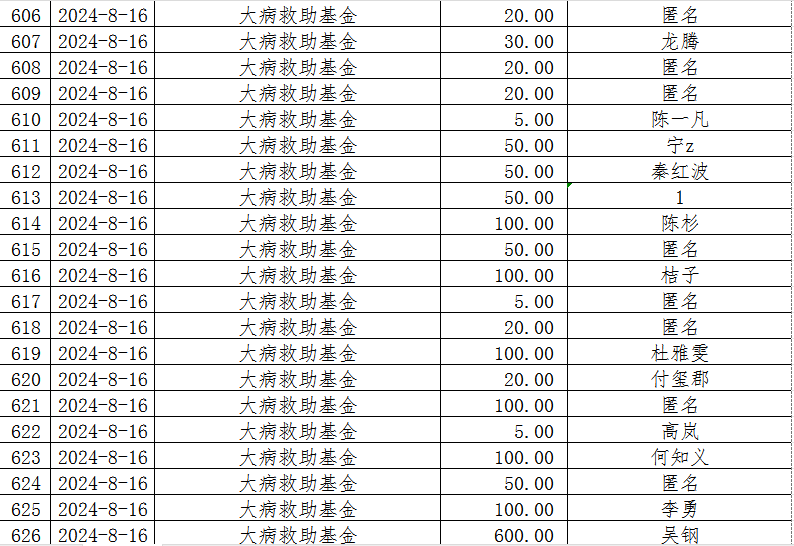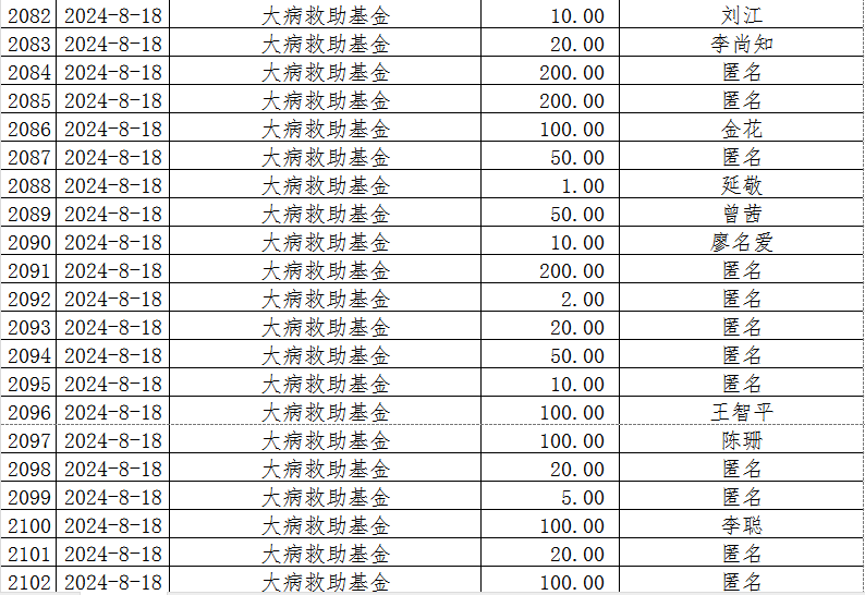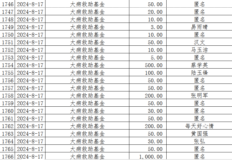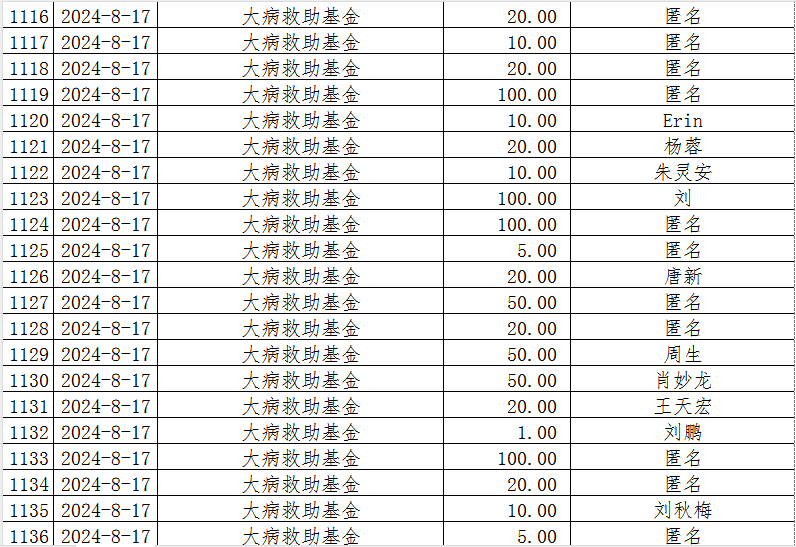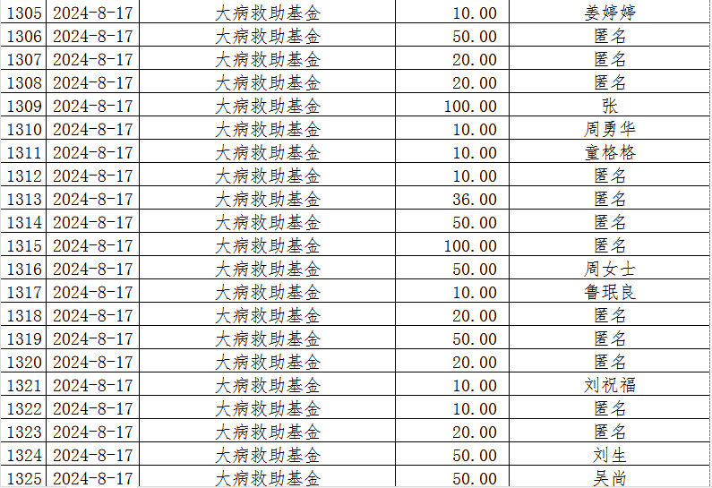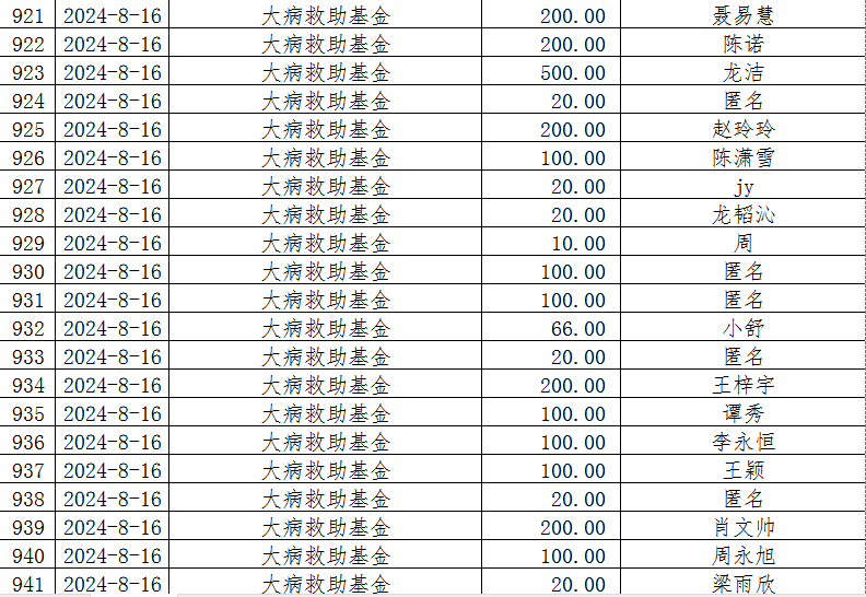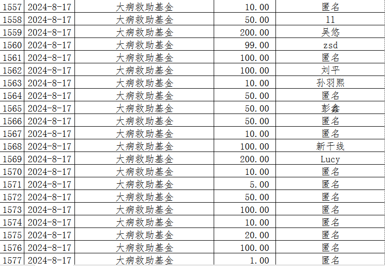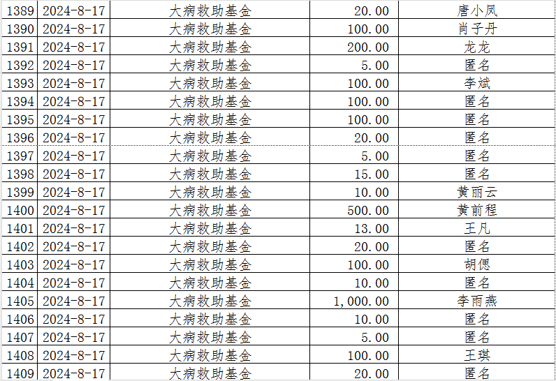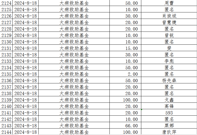 湖南省永利集团88304官网教育基金会2024年8月捐赠收入表