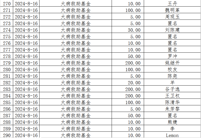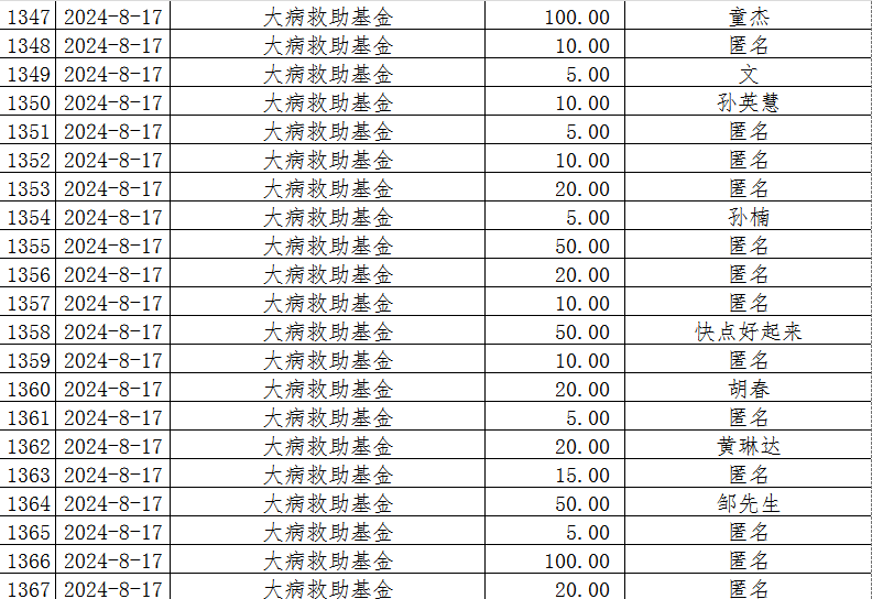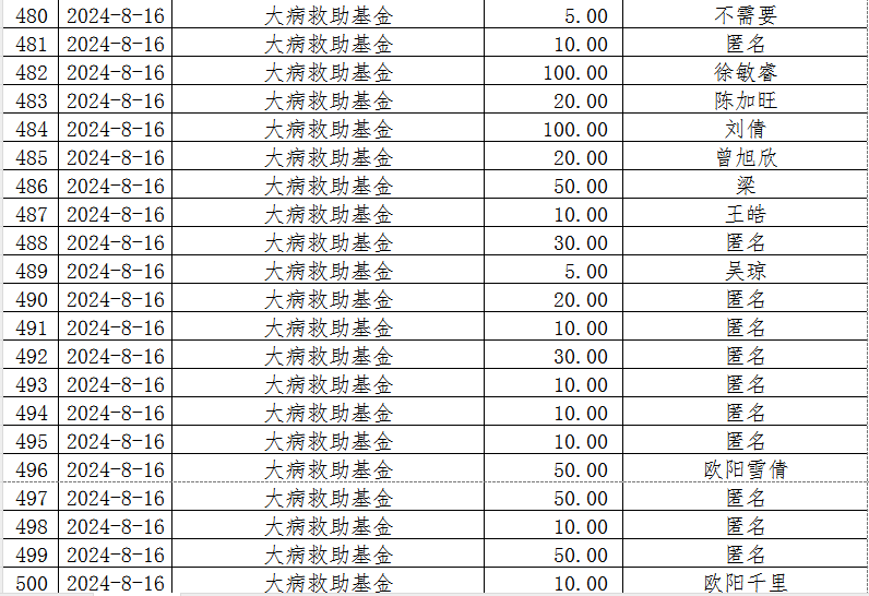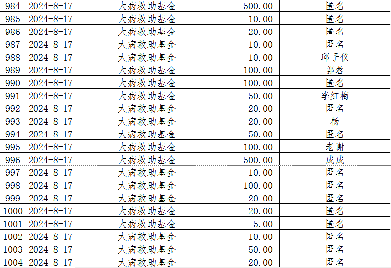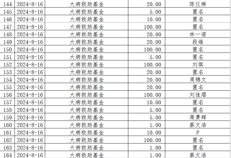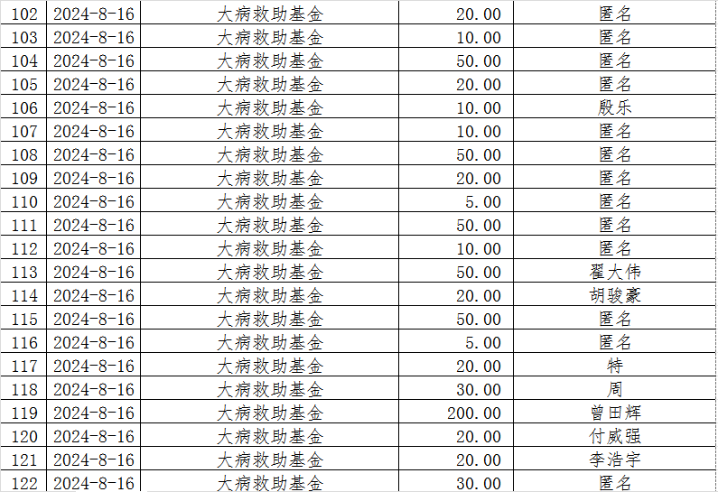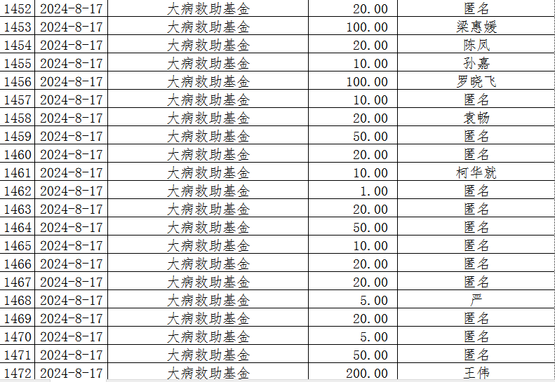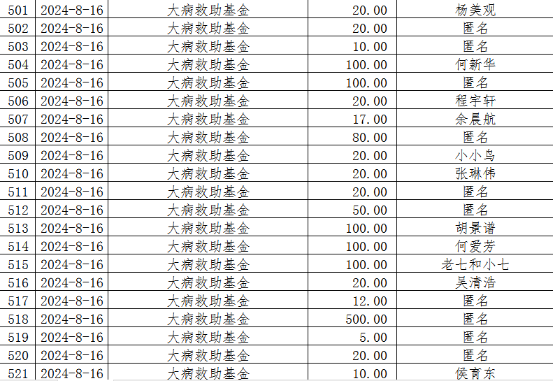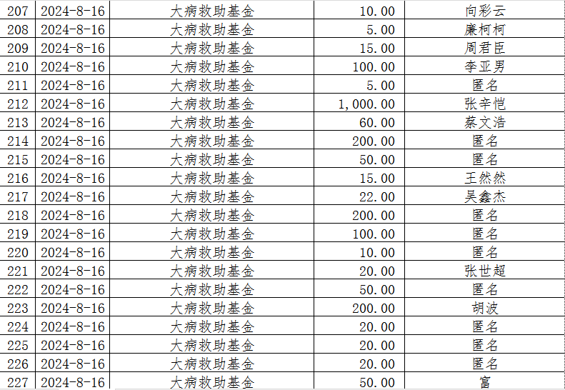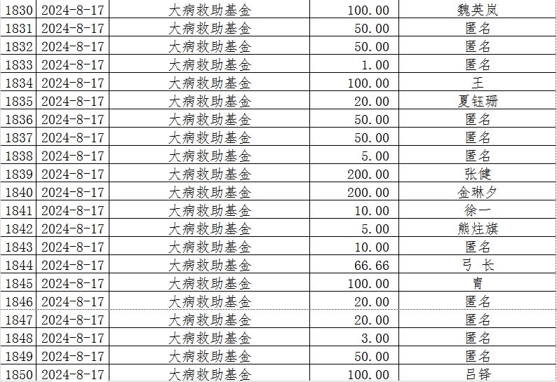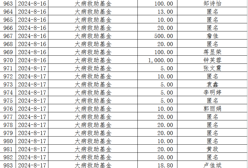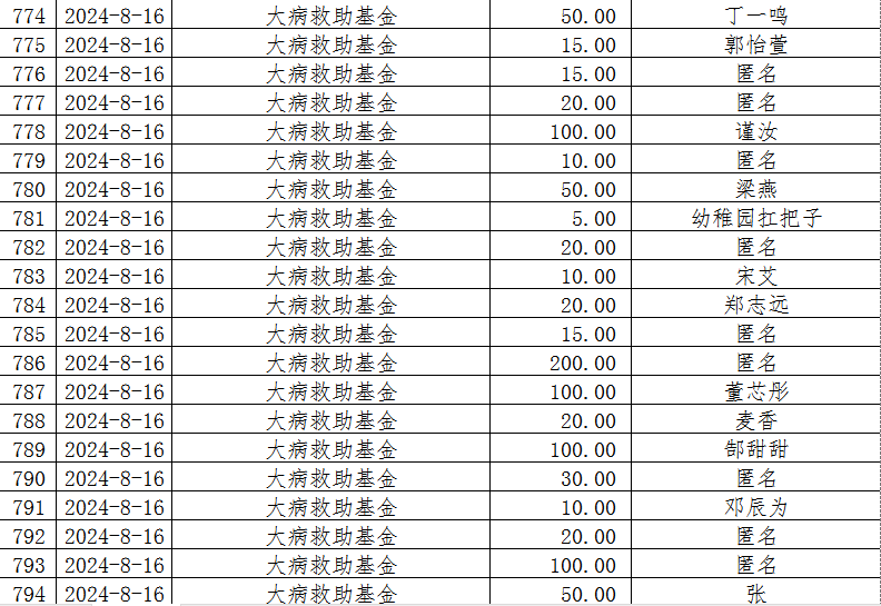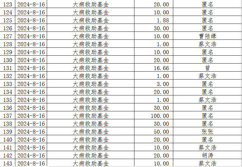 湖南省永利集团88304官网教育基金会2024年8月捐赠收入表