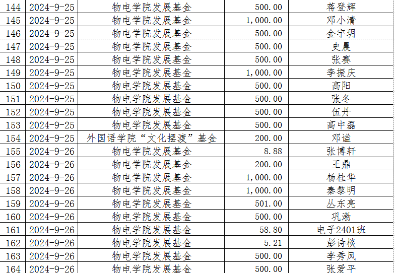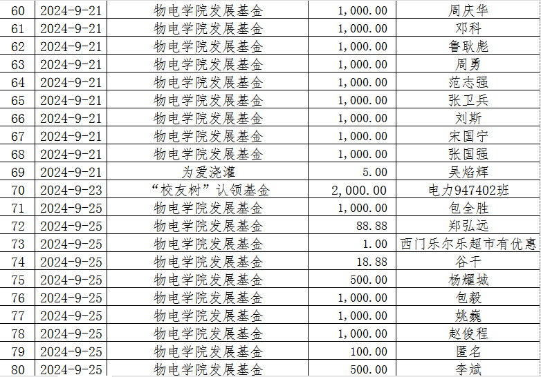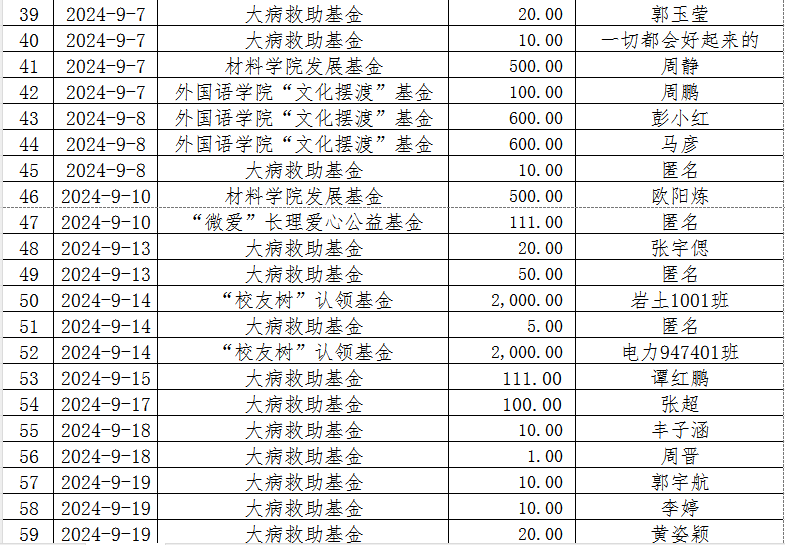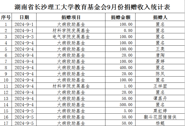 湖南省永利集团88304官网教育基金会2024年9月捐赠收入表