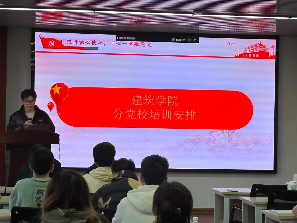 为深入学习宣传贯彻党的二十大精神,引领我院入党积极分子、发展对象和预备党员在学习宣传贯彻党的二十大精神上先学先行、善作善成,切实在学思践悟中练就真本领,4月25日晚上7:00,建筑学院于16号教学楼314报告厅举行了2023年春季分党校开班仪式。法学院党建辅导员陈鑫宇老师、建筑学院学工办郭恒老师、杨斯嘉老师,以及本期积极分子、发展对象和预备党员共91人参会。开班仪式由蒋津林同学主持。