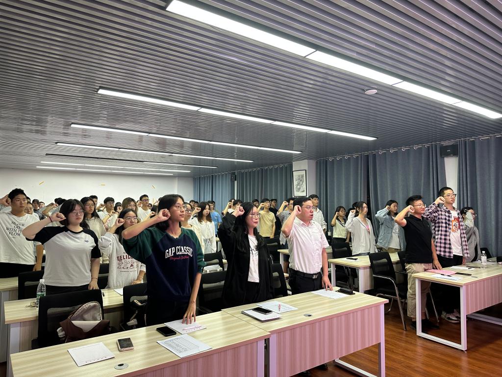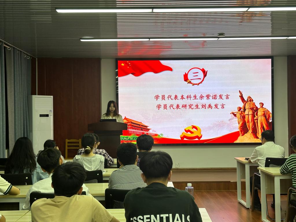 在庄严肃穆的国歌奏唱声中,开班仪式拉开序幕。班长罗晟同学宣读了培训班期间的纪律要求和课程安排,并从课堂纪律、社会实践、结业考试三个方面对学员们提出具体的考核标准。本科生学员代表余紫诺同学结合自身成长经历,在发言中表示,随着对党的认识不断加深,更加坚定了自己入党的决心,同时也表达了自己完成本次培训的态度与决心,号召同学们在今后的学习生活工作中,勇担使命,勇于实践,全面发展,不忘初心。研究生学员代表刘禹在发言中表示,希望培训班学员们端正入党动机,自觉接受党组织的培育,积极向党组织靠拢,并以党员的标准严格要求自己,认真学习,积极思考,努力成为身边同学的榜样。
