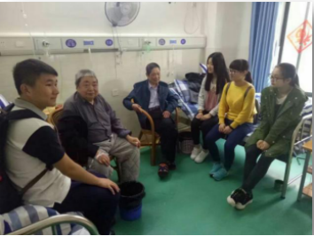 (与老人一齐聊天)