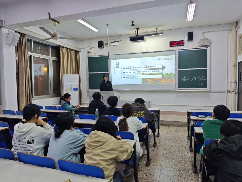 在赛事与平台学习环节,各班级班主任或辅导员老师详细解读第二届“金种子杯”大学生创业大赛方案,明确参赛对象、赛程安排、奖项设置及评审标准,结合往届建筑类获奖案例,鼓励同学们组建跨专业团队积极备赛。同时,通过介绍学校大学生创新创业园(孵化基地)的场地支持、创业指导、资源对接等政策,说明入驻申请流程与评审标准,动员有创业意向的同学借助平台降低创业成本。