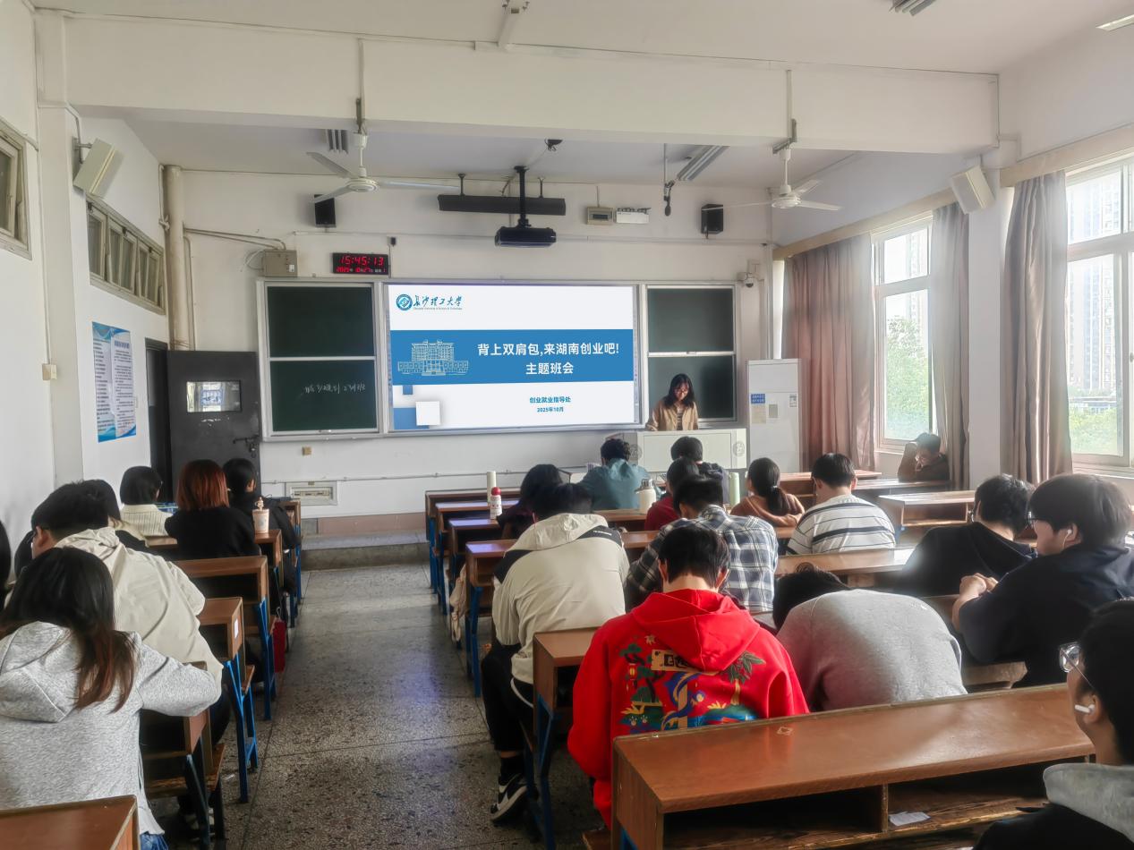 为深入贯彻湖南省《支持大学生创业若干措施》通知精神,帮助学生全面了解创业扶持政策,激发创新创业热情。近期,永利集团88304官网建筑学院召开“背上双肩包,来湖南创业吧!”主题班会,主题班会覆盖全院全体学生。