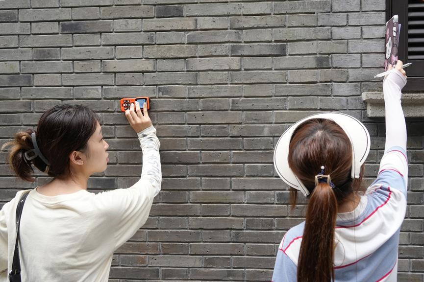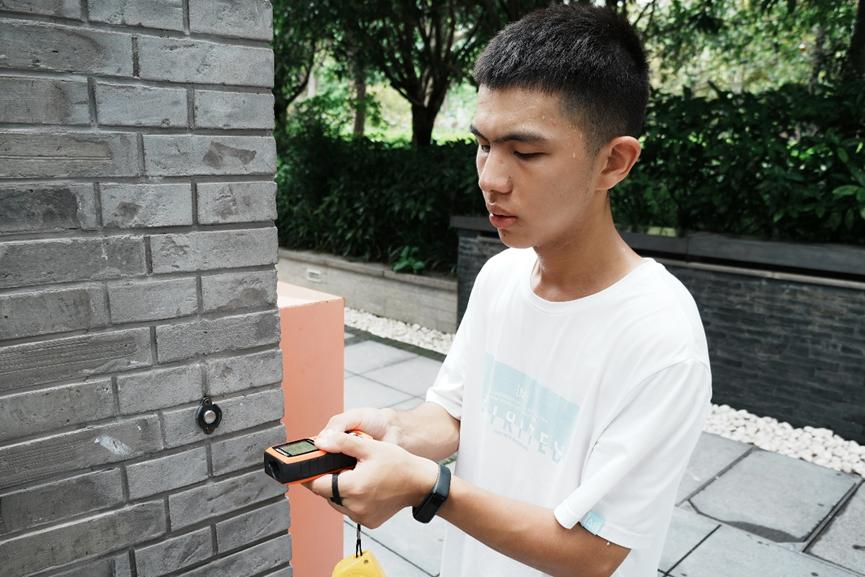 7月5日上午,“三下乡”实践团带齐测绘工具、摄影设备以及无人机等设备,前往上海静安区成都北路7弄30号中国共产党第二次全国代表大会旧址。在第一天对其周边环境观测的基础上,实践团队使用测距仪、卷尺等工具对中共二大旧址的建筑整体以及建筑细部进行测量,并使用平板电脑和坐标纸记录数据并进行汇总。