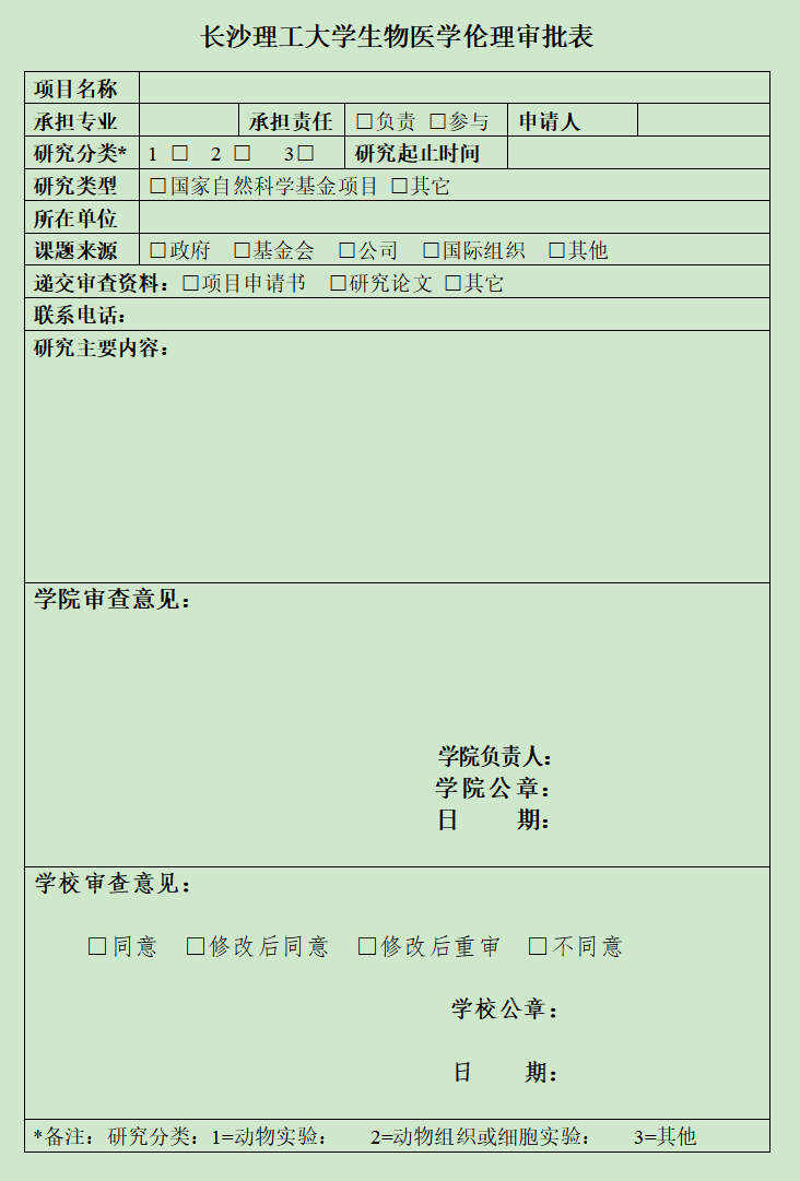 永利集团88304官网生物医学伦理审批表