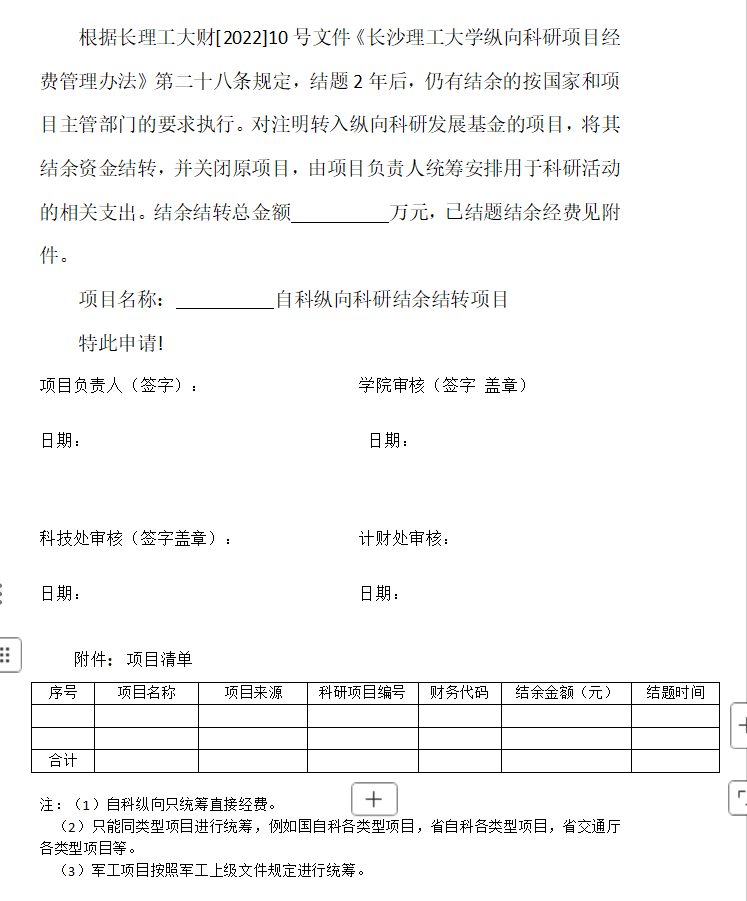 自科纵向科研结余结转项目申请