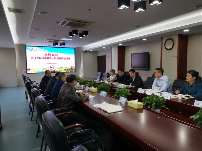 杨伟军代表学校对长沙市科技局领导及相关专家的到来表示热烈欢迎,并简要介绍了学校的建设和发展情况。科研部部长王磊、成果转化中心常务副主任李岳林就学校的学科优势、科研发展、产学研合作、成果转化等方面做了介绍,并表示在市科技局的指导和支持下,将进一步做好永利官网科研管理工作。