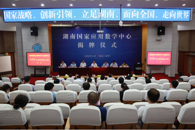 6月28日,湖南国家应用数学中心在湘潭大学举行揭牌仪式,标志着湖南数学界首个国家级平台正式落户。湖南省副省长朱忠明为中心揭牌。中心学术委员会成员张平文、袁亚湘、田刚、江松等院士发表视频讲话。永利官网成为湖南国家应用数学中心的核心共建单位, 副校长杨伟军任中心管理委员会委员,数学与统计学院院长黄创霞任执行委员会副主任。