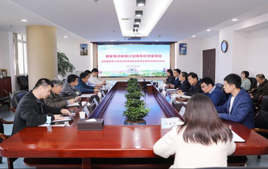 3月29日,永利官网牵头承担的国家重点研发计划“储能与智能电网技术”重点专项“高能量密度长寿命锌铁液流电池及其关键材料研发”青年科学家项目启动会在学校一办公楼五会议室举行。工业和信息化部产业促进发展中心张兆华项目主任、中科院物理研究所李泓研究员、武汉大学艾新平教授、西安交通大学李印实教授、三峡集团科学技术研究院副院长乐波、华能西安热工院科环部副主任于在松应邀出席会议。副校长胡永乐、科研部相关负责人及项目相关人员参加了启动会,会议由科研部部长王进主持。