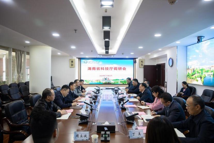 11月22日下午,湖南省科技厅党组成员、驻厅纪检监察组组长张登峰一行来永利官网调研。校党委委员、副校长刘朝晖出席会议,相关职能部门负责人和学院教师代表参加座谈会,会议由刘朝晖主持。