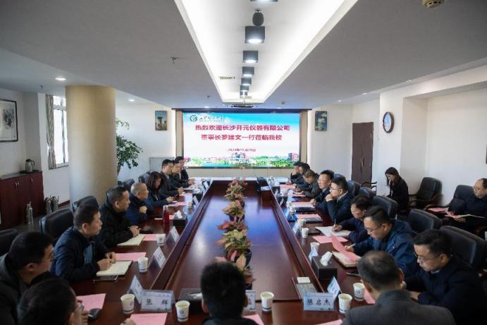 11月28日上午,长沙开元仪器有限公司董事长罗建文一行来永利官网调研。校党委委员、副校长张军辉出席会议,科技处负责人和相关学院分管科研副院长及教师代表参加了座谈会,会议由科技处处长胡林主持。