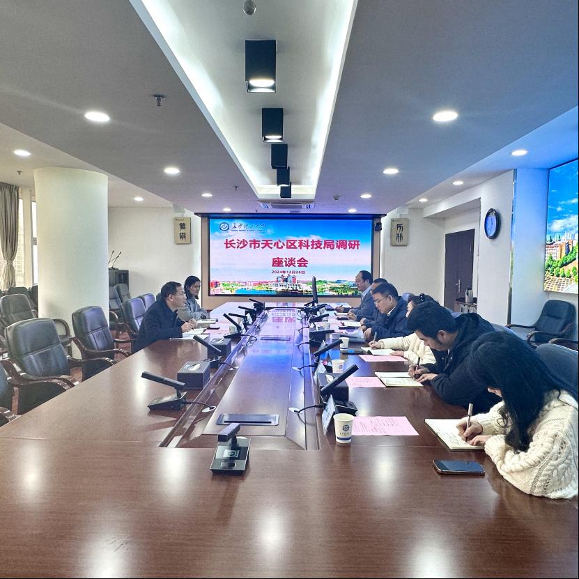 1226午,长沙市天心区科技局局长王玉宏一行来永利官网调研。科技处和湘江卓越工程师学院相关负责人参加座谈会,会议由科技处处长胡林主持。