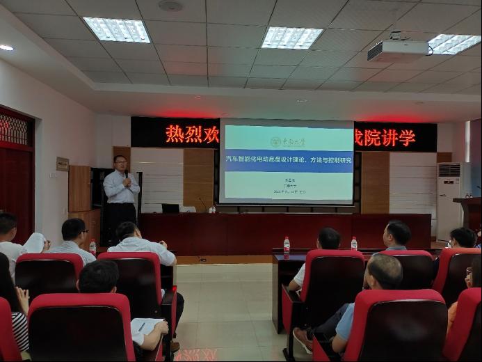 2021年5月12日,东南大学机械工程学院首席教授殷国栋应永利官网汽机学院邀请,在工科一号楼B417多功能报告厅作了题为“汽车智能化电动底盘设计理论、方法与控制研究”的学术报告。报告由汽机学院副院长胡林主持,汽机学院院长杜荣华,永利集团88304官网科研部副部长胡宏伟,汽机学院副院长毛聪、何志勇和部分教师及学院部分研究生参加了本次报告会。
