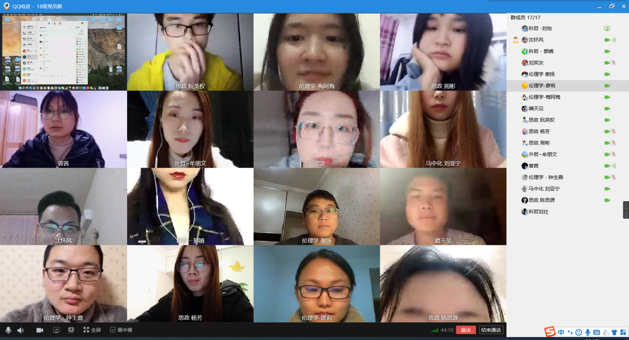 (图为党支部成员线上召开“齐心战疫 党旗飘扬”专题组织生活会)