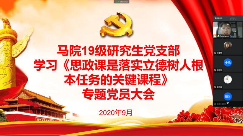 马克思主义学院2019级研究生党支部 召开学习《思政课是落实立德树人根本任务的关键课程》专题党员大会