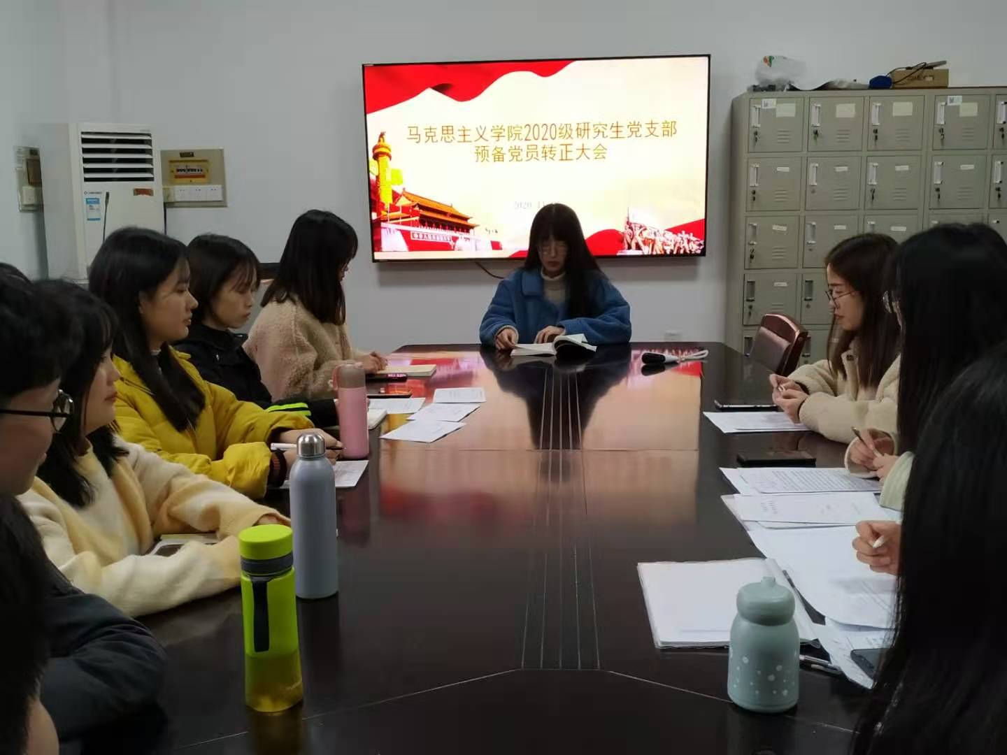 2020年11月25日星期三下午两点半,中共永利集团88304官网马克思主义学院2020级研究生党支部委员会在四教503召开预备党员转正大会。本次会议由2020级党支部书记王静怡主持,参加会议的正式党员应到13名,实到10名;参加会议的预备党员应到3名,实到3名。