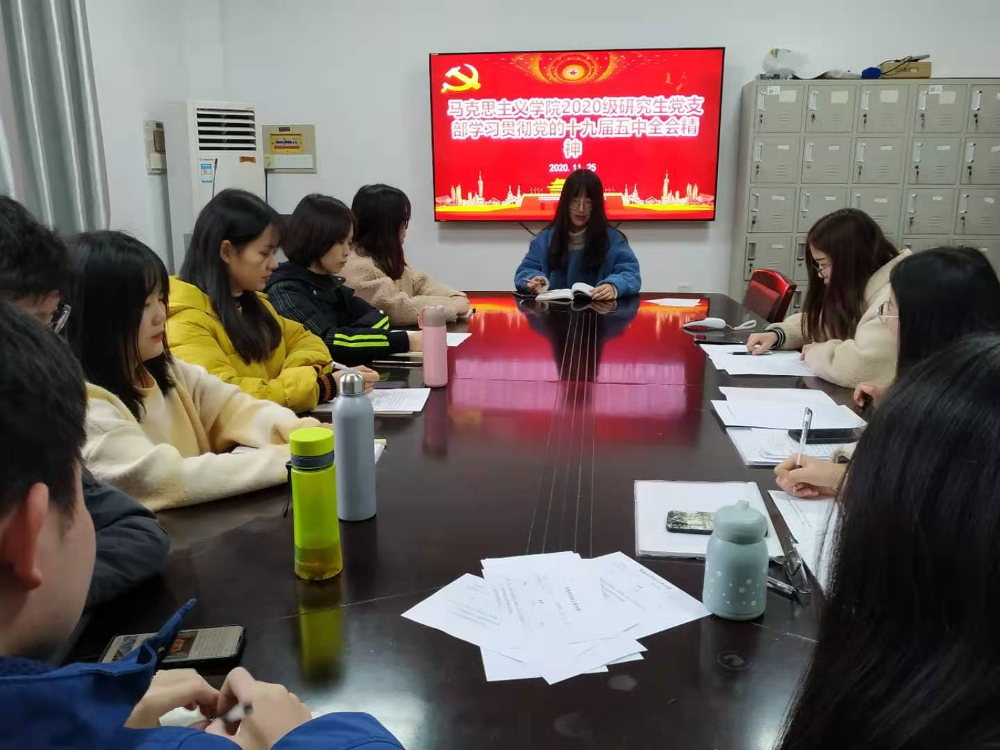 中国共产党第十九届中央委员会第五次全体会议,于2020年10月26日至29日在北京举行。11月25日,我院研究生党支部在四教503会议室召开全体党员会议,学习、传达、贯彻党的十九届五中全会精神。会议由研究生党支部书记王静怡主持,我院全体研究生党员参加本次会议。