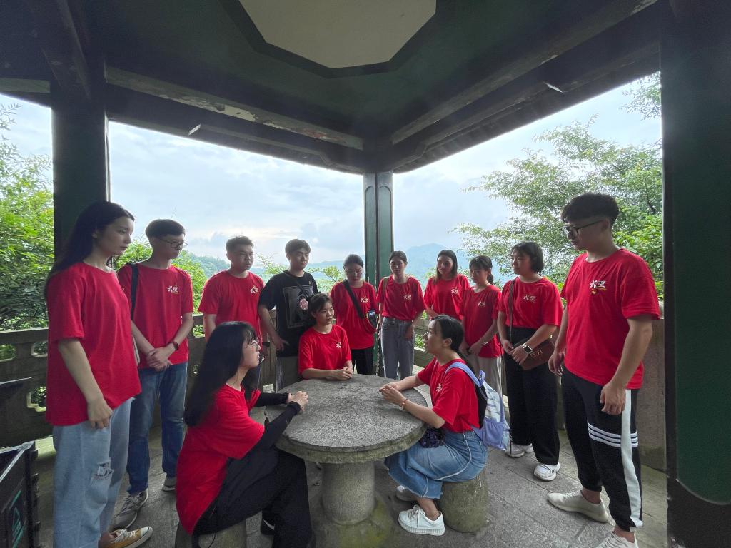 集造化之神秀,萃人文之盛事。在滴水洞的山峰上,望着美丽的大好河山,同学们彼此交流着入党初心。“志愿书中我曾写到要好好学习专业本领建设交通强国,现在我成为了马克思主义理论专业的一名硕士研究生,在新的学科我也将有新的作为。”党员周勇提到。大家畅谈心扉,热情高涨,重新回顾了自己的入党初心和历程。场面激情澎湃,大家倡议在伟人故里放声高歌,表达爱党情怀。“唱支山歌给党听,我把党来比母亲……”“起来,饥寒交迫的奴隶!起来,全世界受苦的人……”“勤劳勇敢的中国人意气风发走进新时代……”这一支支经典歌曲,表达的是同学们坚定理想信念,对党的忠诚和热爱。最后,辅导员老师曾蓓启发大家,初心易得,始终难守,百年奋斗历程艰巨而光辉,青年党员要肩负重任,砥砺前行。