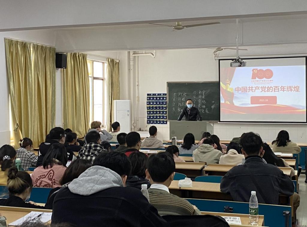 此次党课主题为:党的奋斗历程——中国共产党的百年辉煌,由蔡喜平老师主讲。蔡老师按照历史的时间顺序较系统、全面的讲述了中国共产党奋斗的四个阶段。第一个阶段是开天辟地,中国共产党在1921-1949年新民主主义革命时期完成了救国大业;第二个阶段是改天换地,中国共产党在1929-1978年社会主义革命和建设时期完成了兴国大业;第三个阶段是翻天覆地,中国共产党在1978-2012年改革开放和社会主义现代化建设新时期推进富国大业;第四个阶段是惊天动地,中国共产党自2012年以来在中国特色社会主义新时代推进并将在本世纪中叶实现强国大业。最后,蔡老师以校党委书记的讲话作为本次课程的结束语,启示我们作为青年一代该如何履行时代使命。