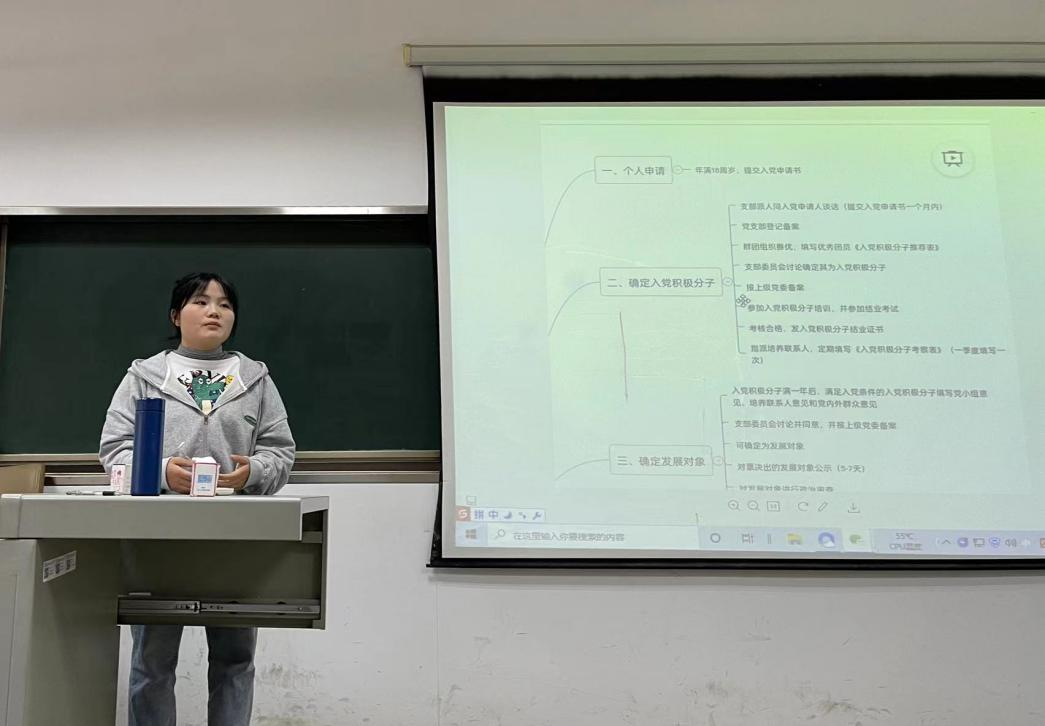 其次,周勇同志围绕教材,强调端正入党动机是争取入党的首要问题。在分享入党动机环节,周勇同志从自己的入党历程入题,结合大学四年学习的经历,谈了为什么要入党以及入党后怎么做,鼓励大家思考本心,找准方位,坚定理想信念、端正入党动机,塑造自己。