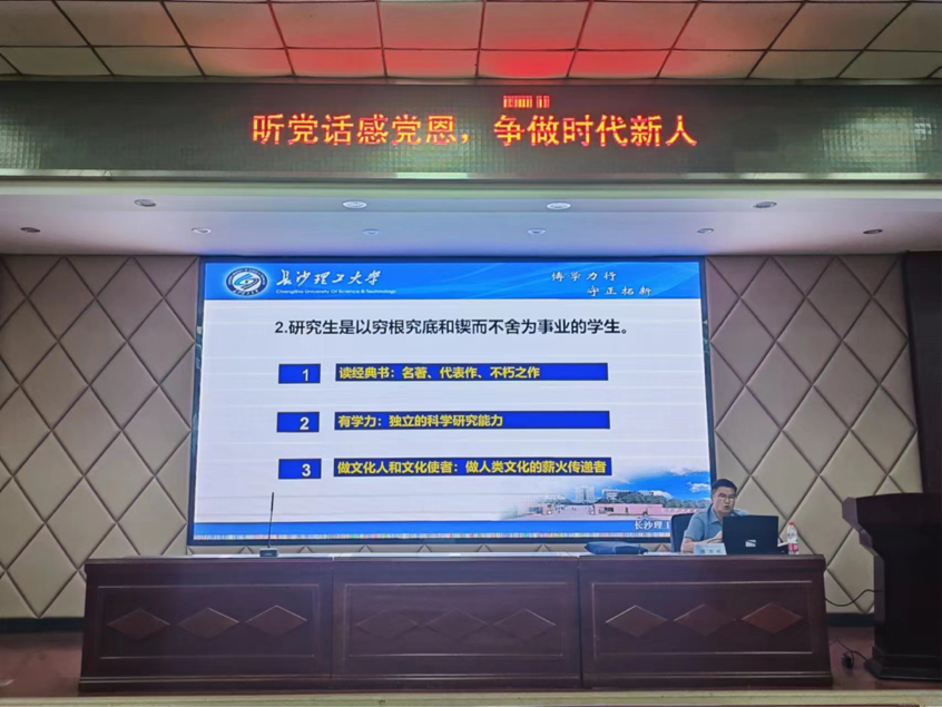 2022年9月13日下午四点半,马克思主义学院党委书记陈万球在云塘校区文科楼A200为马克思主义学院2022级研究生讲授了“书记第一堂党课”,本次课堂的主题为“听党话感党恩,争做时代新人,”陈书记从三个方面进行了详细的阐述。