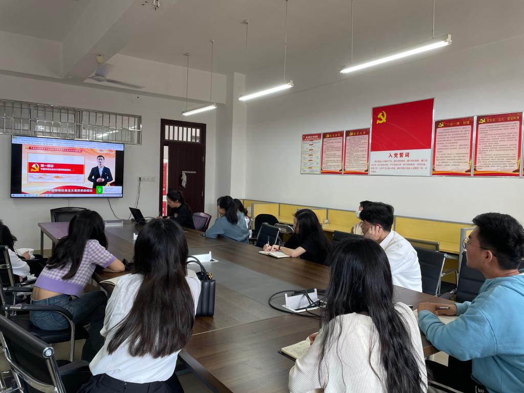 紧接着,大家集中学习了河南科技大学郭守伟老师有关于党的二十大精神的宣讲《中国特色社会主义是实现中华民族伟大复兴的必由之路》,宣讲总共分为了两个部分,第一个部分讲述了中国特色社会主义是历史的结论、人民的选择;第二个部分讲述了中国特色社会主义是伟大的实践、持续的探索。坚持和发展中国特色社会主义是一篇大文章,是我们党领导人民进行伟大社会革命的成果,我们必须不断交出新时代坚持和发展中国特色社会主义的合格答卷,在实现中华民族伟大复兴的必由之路上接续奋斗、阔步前进。