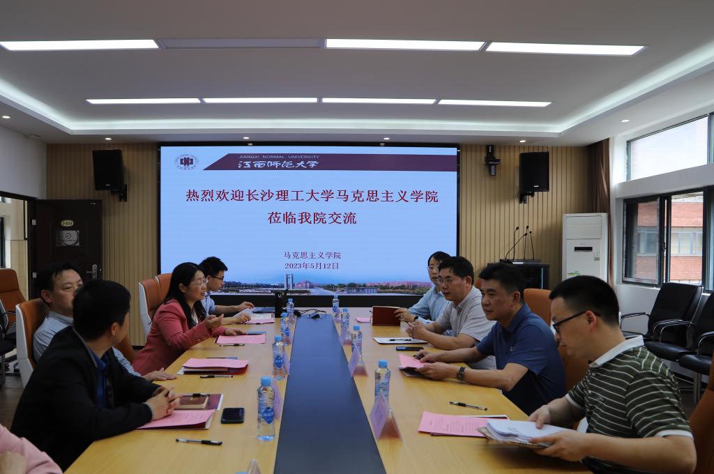 2023年5月12日,马克思主义学院张明海院长带领艾楚君教授、院学科办文贵全主任、陈方芳博士一行4人前往江西师范大学马克思主义学院开展了学习交流活动,江西师范大学马克思主义学院肖华平党委书记、尤琳执行院长、严文波副院长、王江伟院务委员、党政办刘艳主任等学院领导、老师热情接待了张院长一行,并组织召开了交流座谈会。
